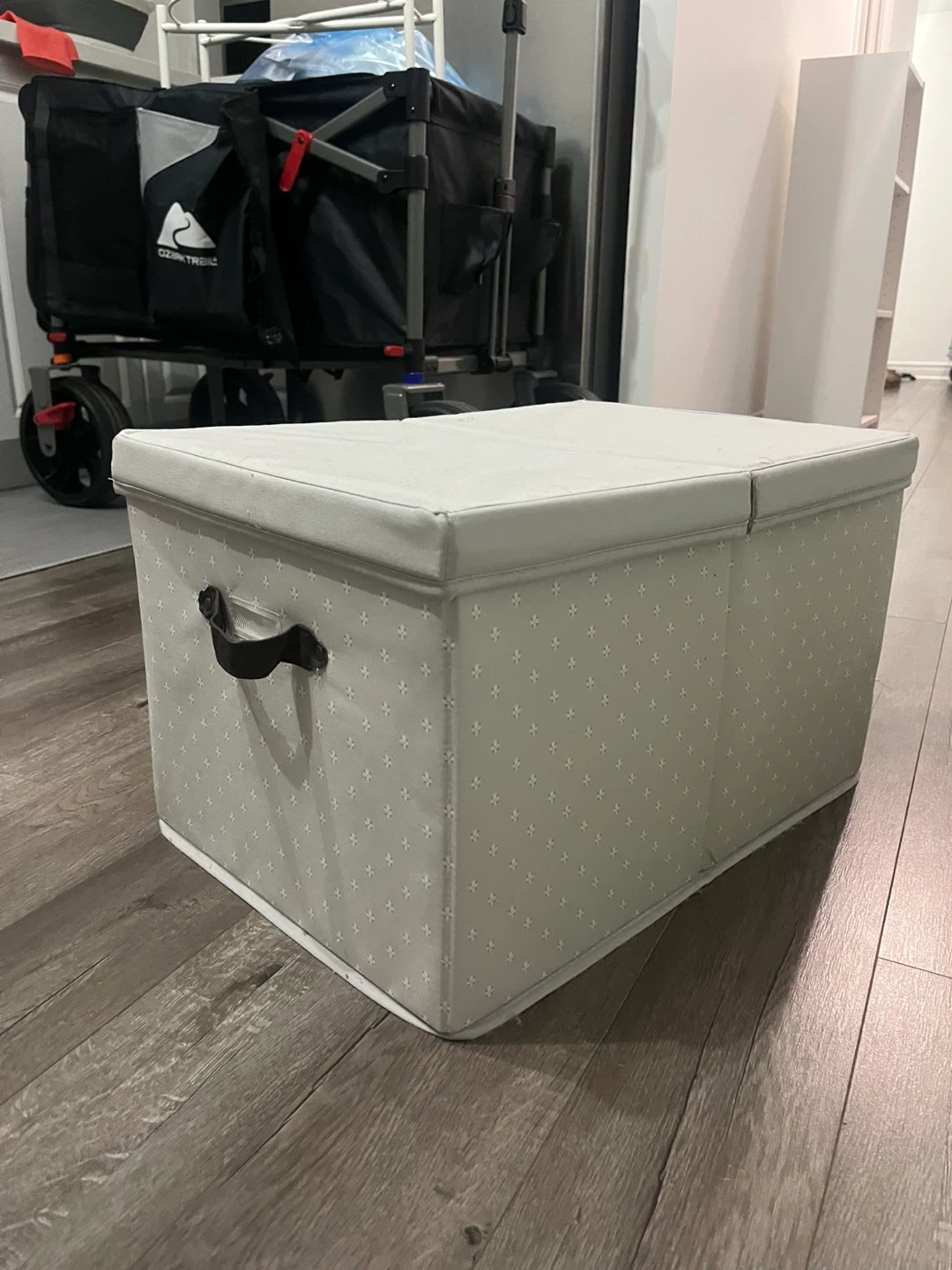 Selling a grey storage ottoman! It's in great condition and perfect for storing toys or blankets. It's a great addition to any room!
