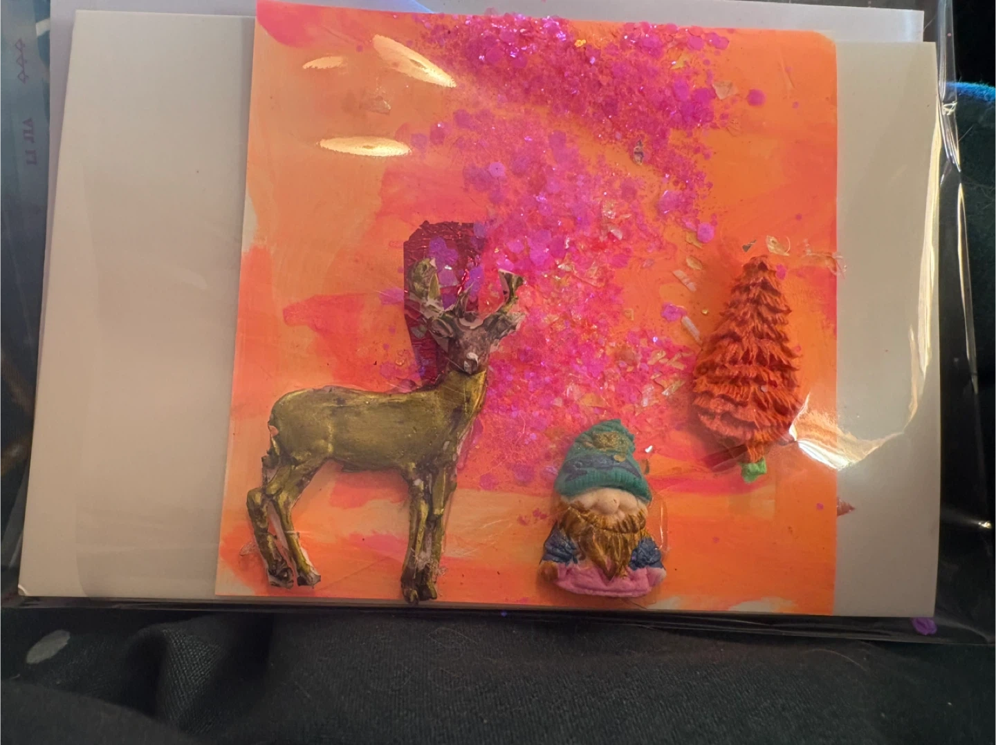 I'm selling handmade 3D art cards. They are unique and charming pieces, perfect for adding a touch of whimsy to any space. Each card features intricate details and a delightful three-dimensional design. Great for gifting or collecting!