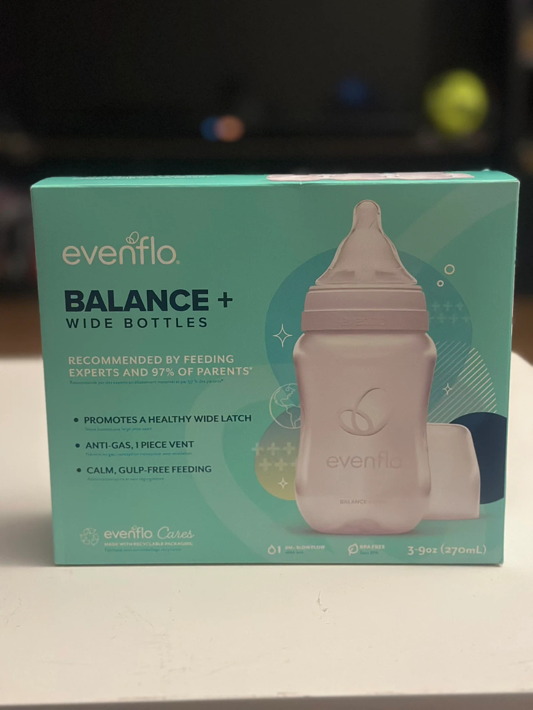 Selling a set of Evenflo Balance+ wide bottles. These bottles are designed to promote a healthy wide latch and feature an anti-gas, 1-piece vent for calm, gulp-free feeding. Each bottle holds 3-9oz (270mL). Perfect for babies transitioning between breast and bottle!