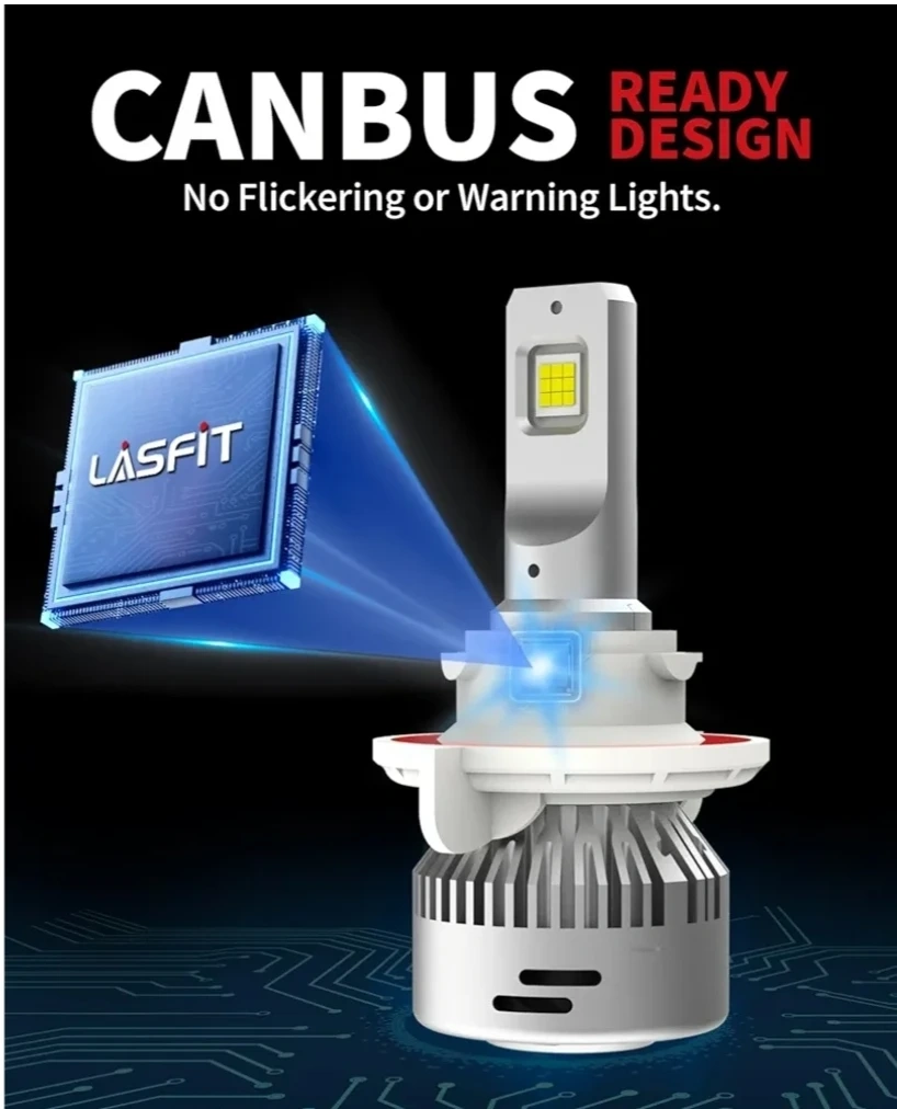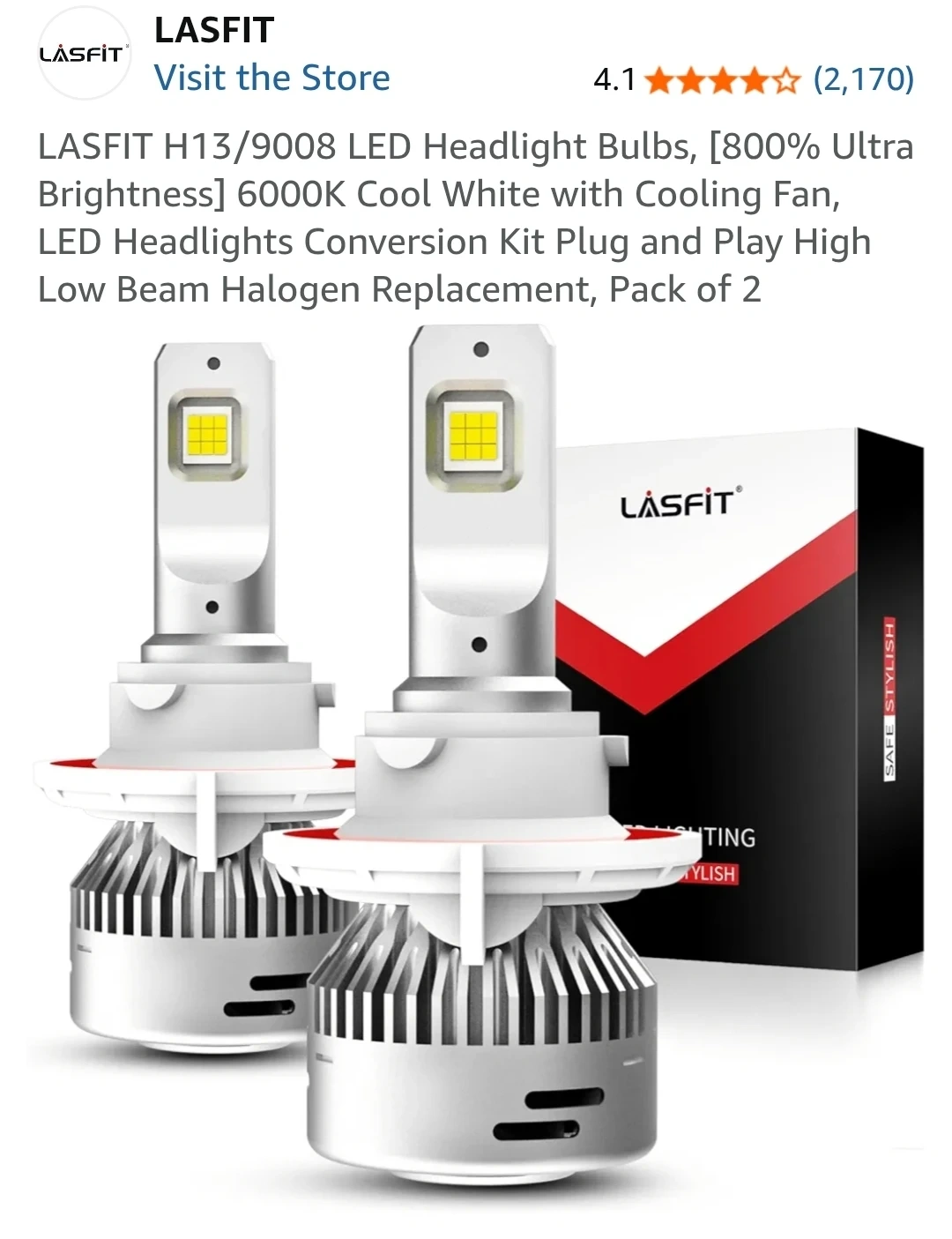 Upgrade your vehicle's lighting with this pair of LASFIT H13/9008 LED headlight bulbs, boasting 6000K cool white light and enhanced brightness for safer driving. These headlights feature a plug-and-play design for easy installation as a high/low beam halogen replacement.