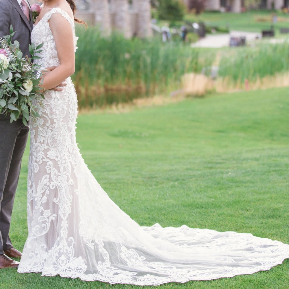 Make your special day unforgettable with this stunning "Allure Bridals" gown, purchased from Everything But The Groom. Romantic, elegant, and designed to flatter, this dress blends soft tones of nude, champagne, and ivory for a timeless bridal look.