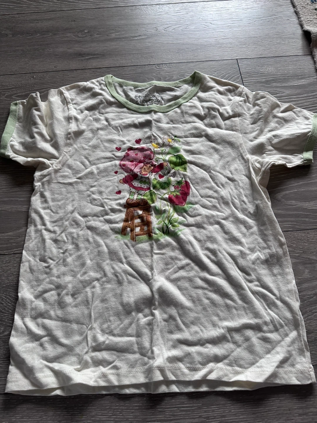 Selling a cute Strawberry Shortcake t-shirt in size L! The shirt is made of 100% cotton and features a colourful graphic of Strawberry Shortcake. Perfect for any fan of the classic cartoon!