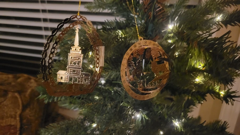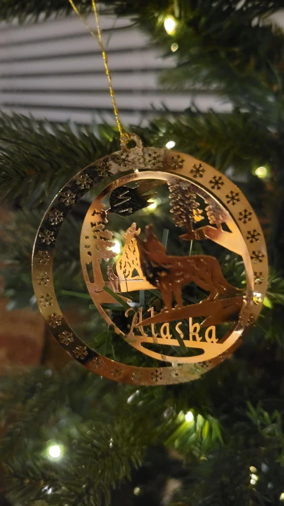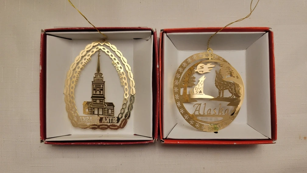 Selling a set of two Alaska-themed Christmas ornaments! Very fine Details Brass handcrafted piece.
