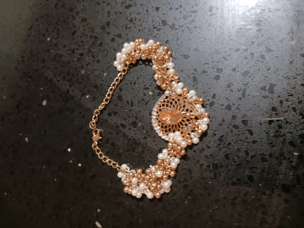 Selling a beautiful gold and pearl beaded bracelet. It's in great condition and would make a lovely addition to any outfit!