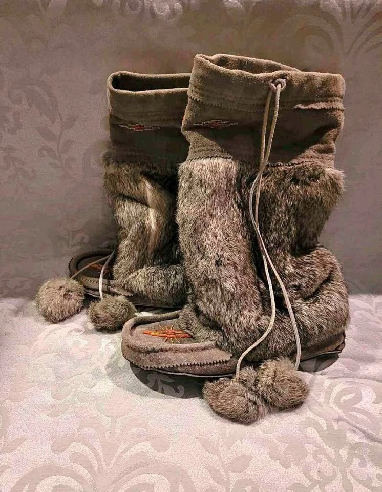 Excellent condition. Natural leather, rabbit fur and sheepskin. 15" tall. Calf size 17". Tag size says 10, true fit size 11. Over 40 years old. No try ons and no returns. Cross-posted.