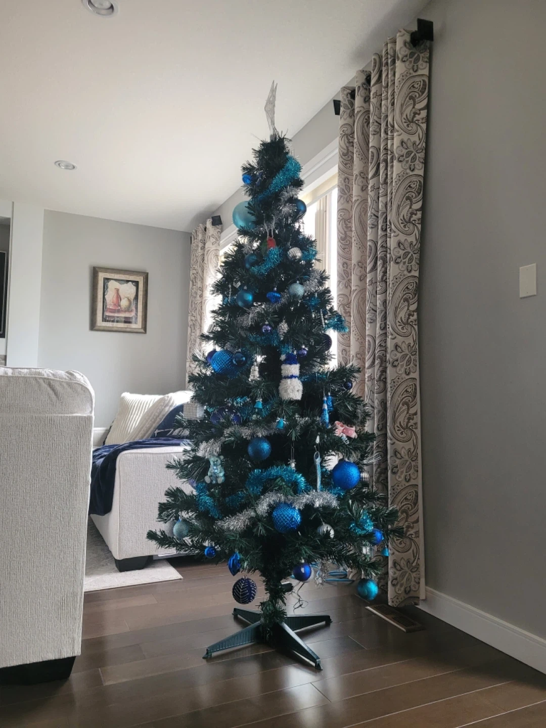 Selling a pre-lit artificial Christmas tree, perfect for the holiday season! It comes with string lights that are already attached, making setup a breeze. It's in great condition and ready to be decorated with your favourite ornaments