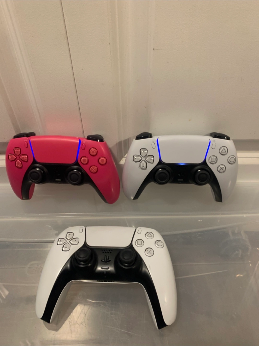 Get ready to elevate your gaming experience with this sleek PlayStation 5 Dualsense controller, offering immersive haptic feedback and dynamic adaptive triggers. These controllers are in used condition.