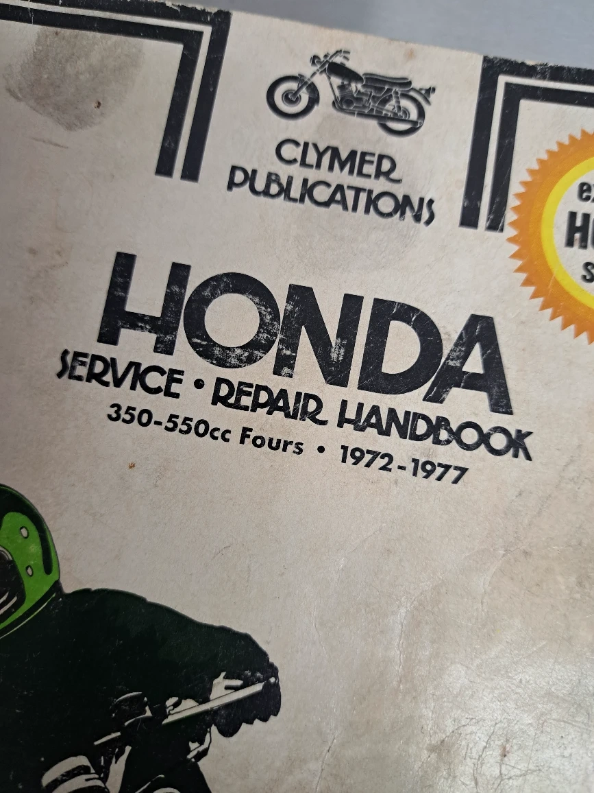 Selling a Honda service and repair handbook by Clymer Publications. It covers the 350-550cc Fours models from 1972 to 1977. Great for anyone working on these classic bikes!