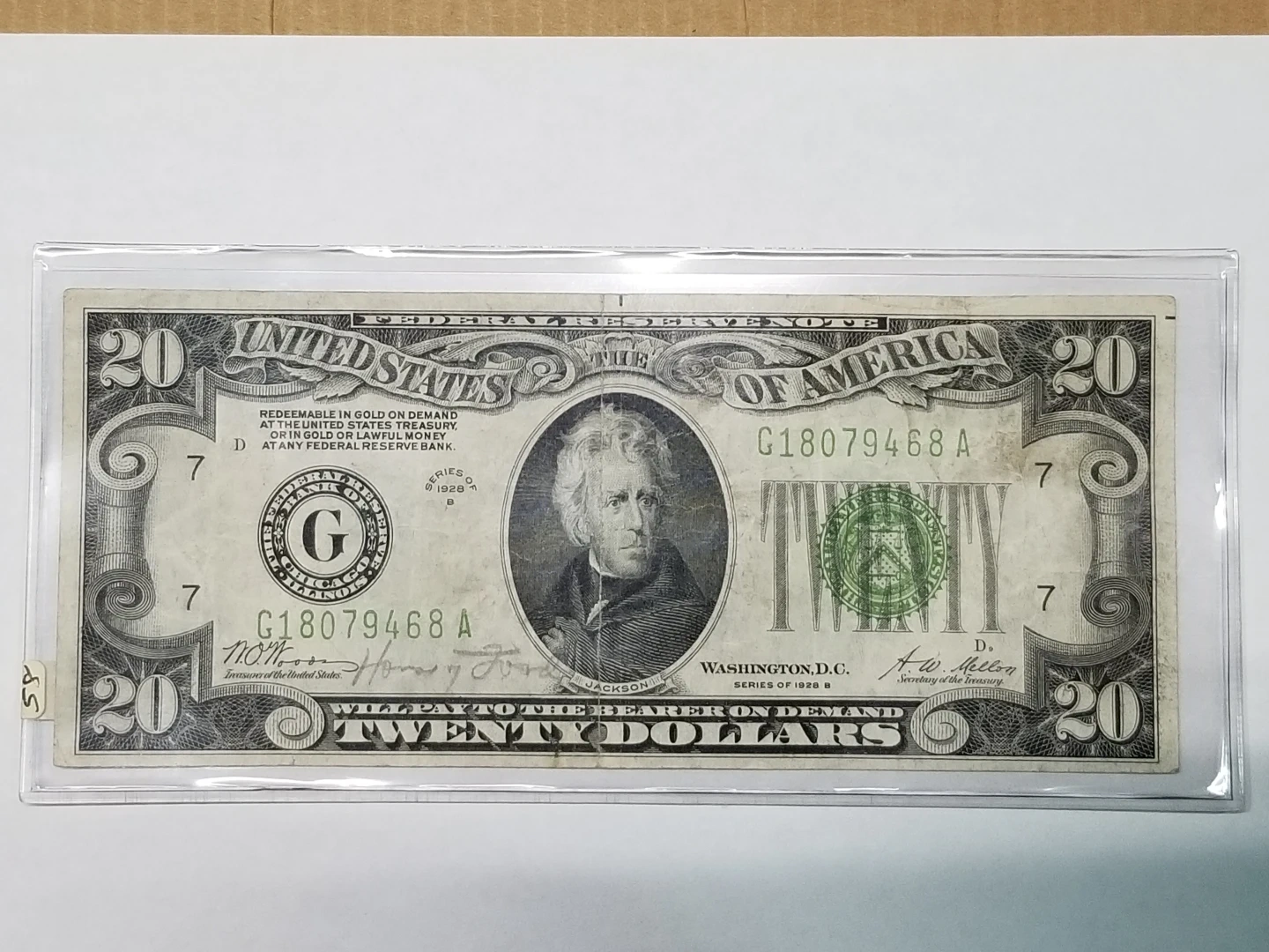 1928-B $20 Dollar Bill Federal Reserve Note Gold Clause Chicago