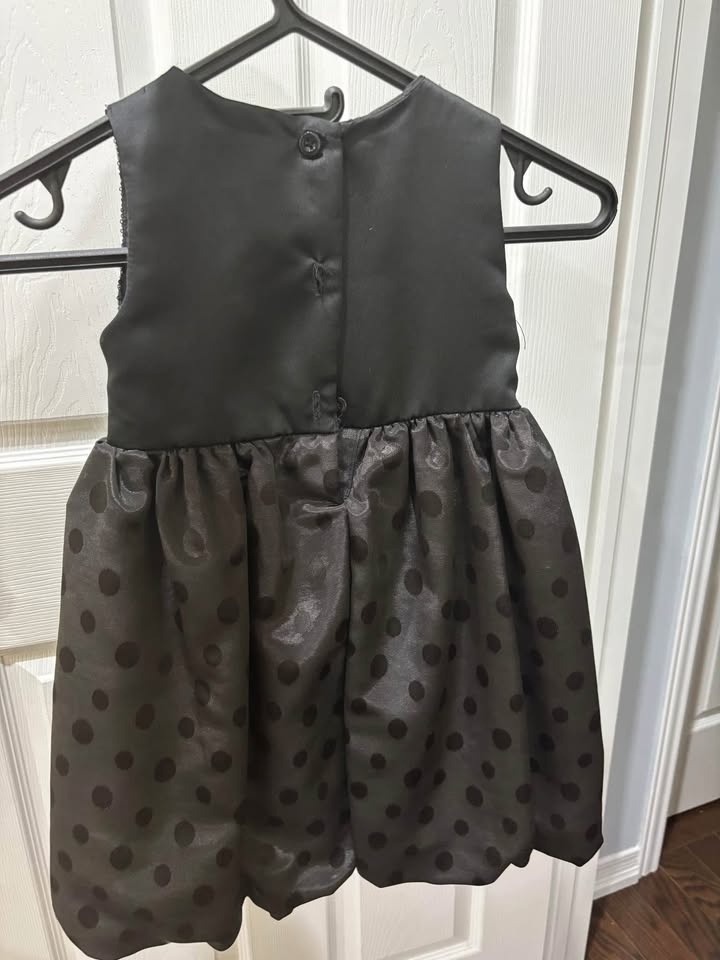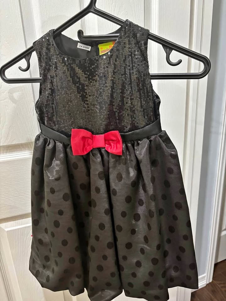 Beautiful Black Sequin & Polka Dot Party Dress with Red Bow