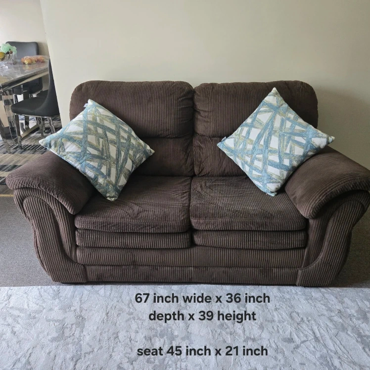 Selling a comfy brown corduroy sofa and loveseat set. It's perfect for a living room or family room. The set shows some signs of use, but it's still in good condition and ready for a new home!