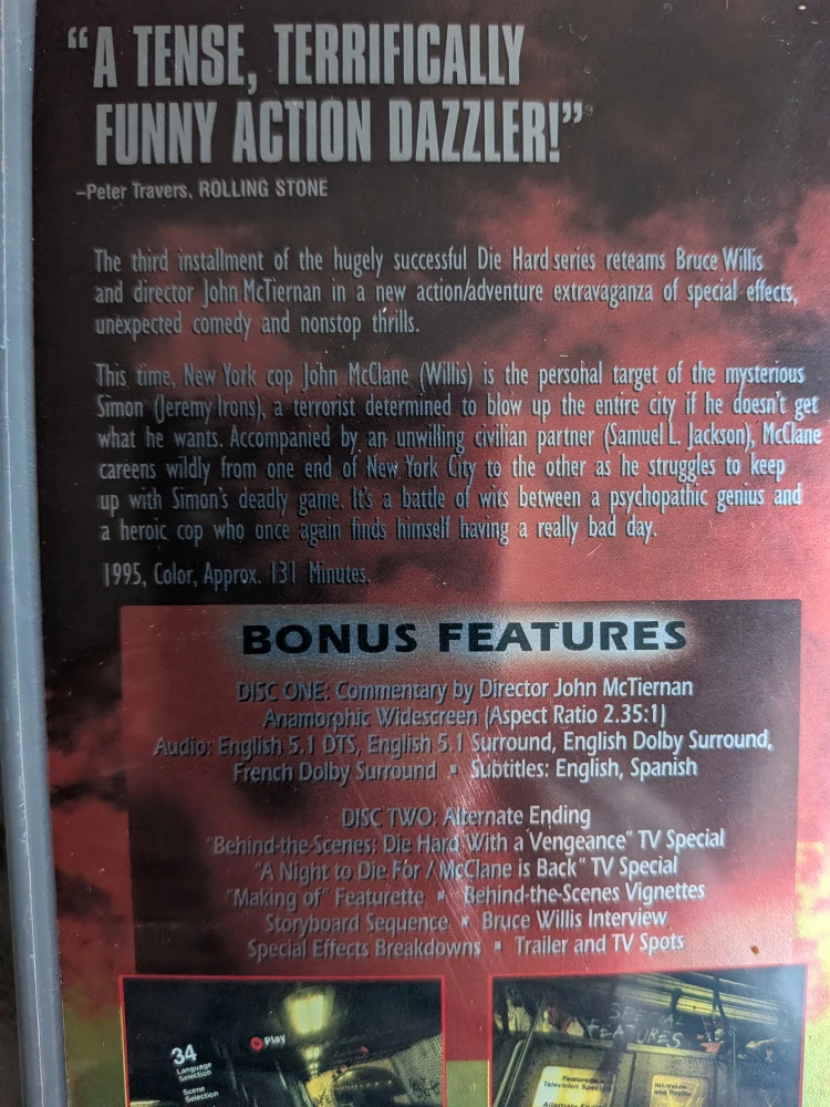 Selling a collection of Die Hard DVDs! Includes Die Hard, Die Hard 2: Die Harder, Die Hard with a Vengeance, and another Die Hard DVD. Great for any Bruce Willis fan!