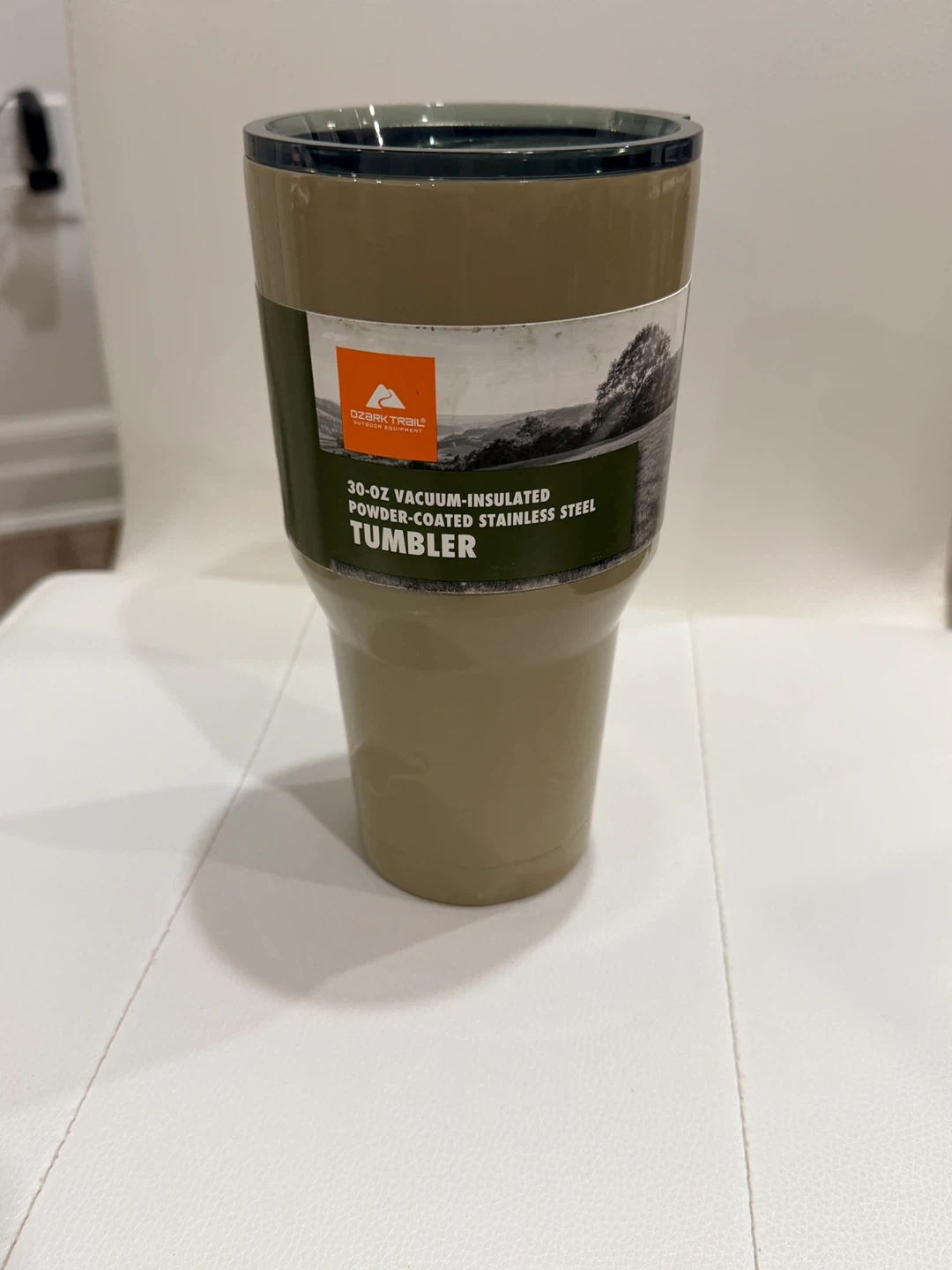 It's vacuum-insulated and powder-coated stainless steel. Keeps liquids cold or hot with its double-wall vacuum insulation. It's also sweat-free, BPA-free, and top-rack dishwasher safe