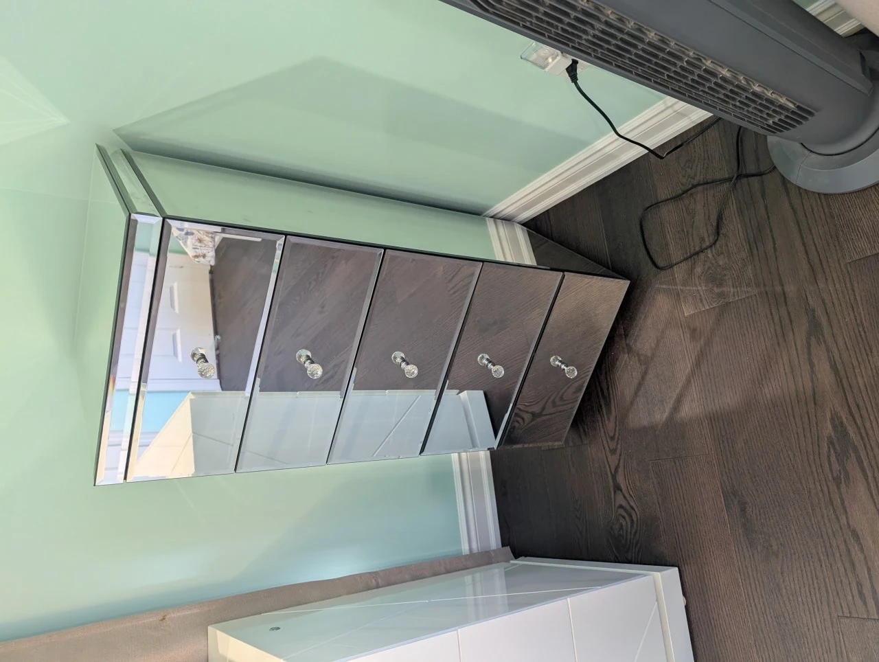 Buy & SellMirrored 5-Drawer ChestMirrored 5-Drawer Chest$405Selling a mirrored 5-drawer chest! It's in great condition and would add a touch of glam to any roomConditionNew1 chats·1 favorites·16 viewsSELLERAqsaAudley100 reviewsWHERE TO MEETCheck Location