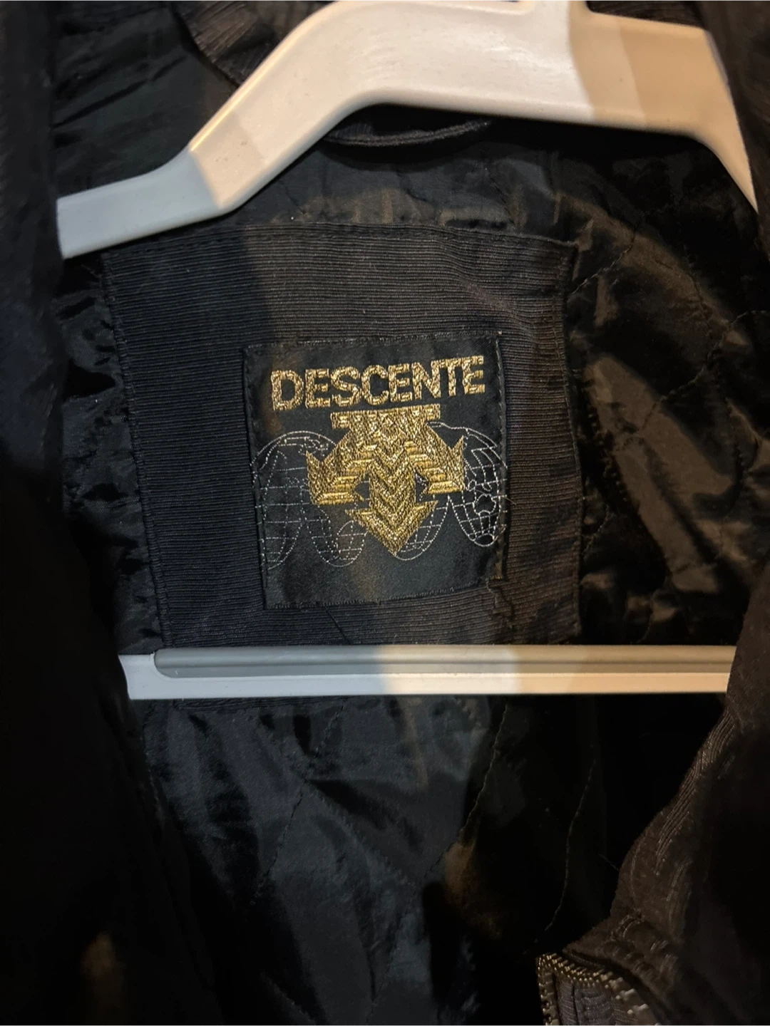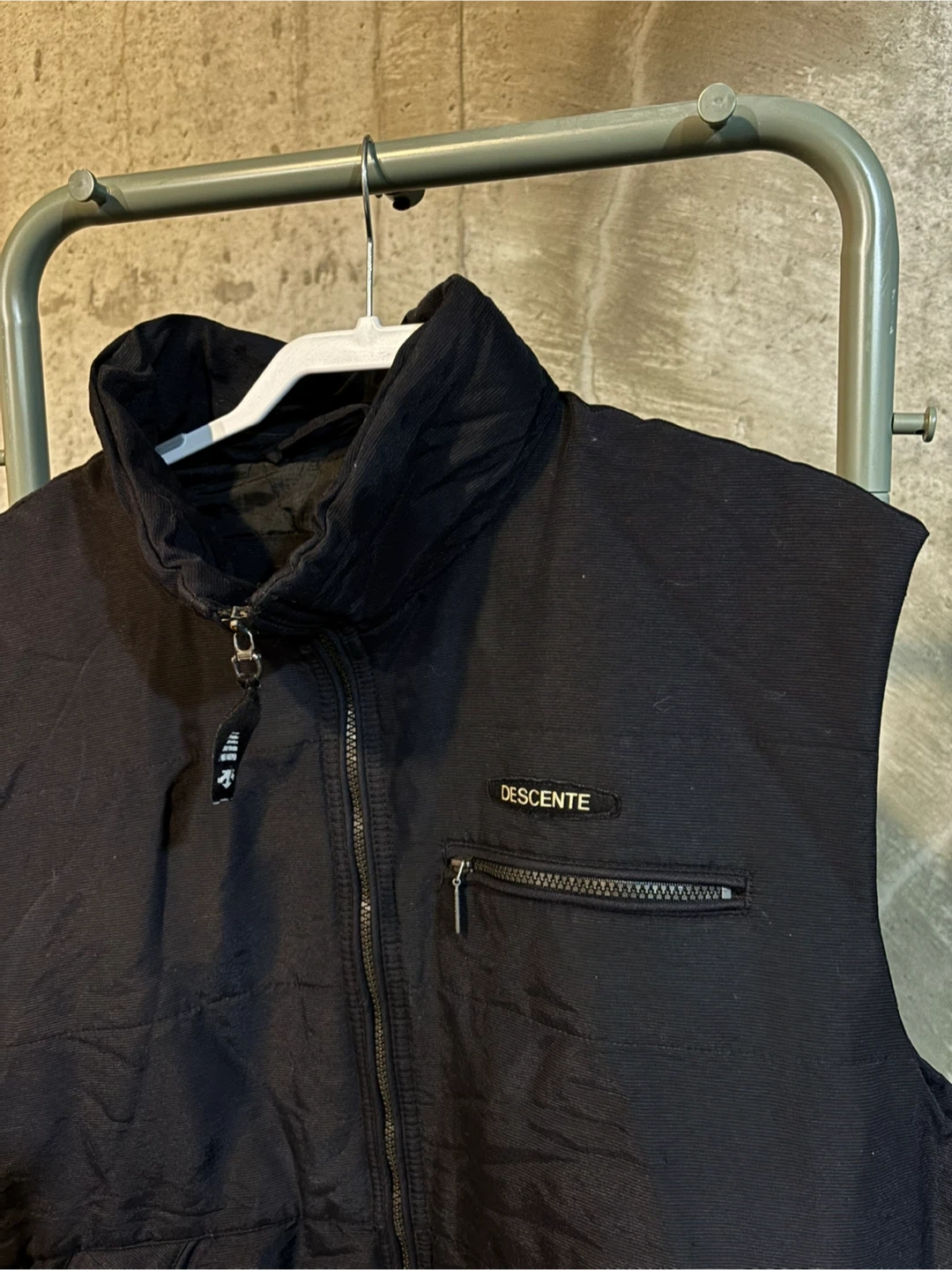 Selling a stylish black padded vest from Descente! It's in great condition and perfect for layering during those cooler days. The vest features a zippered front and a small zippered pocket on the chest. A versatile piece to add to your wardrobe!