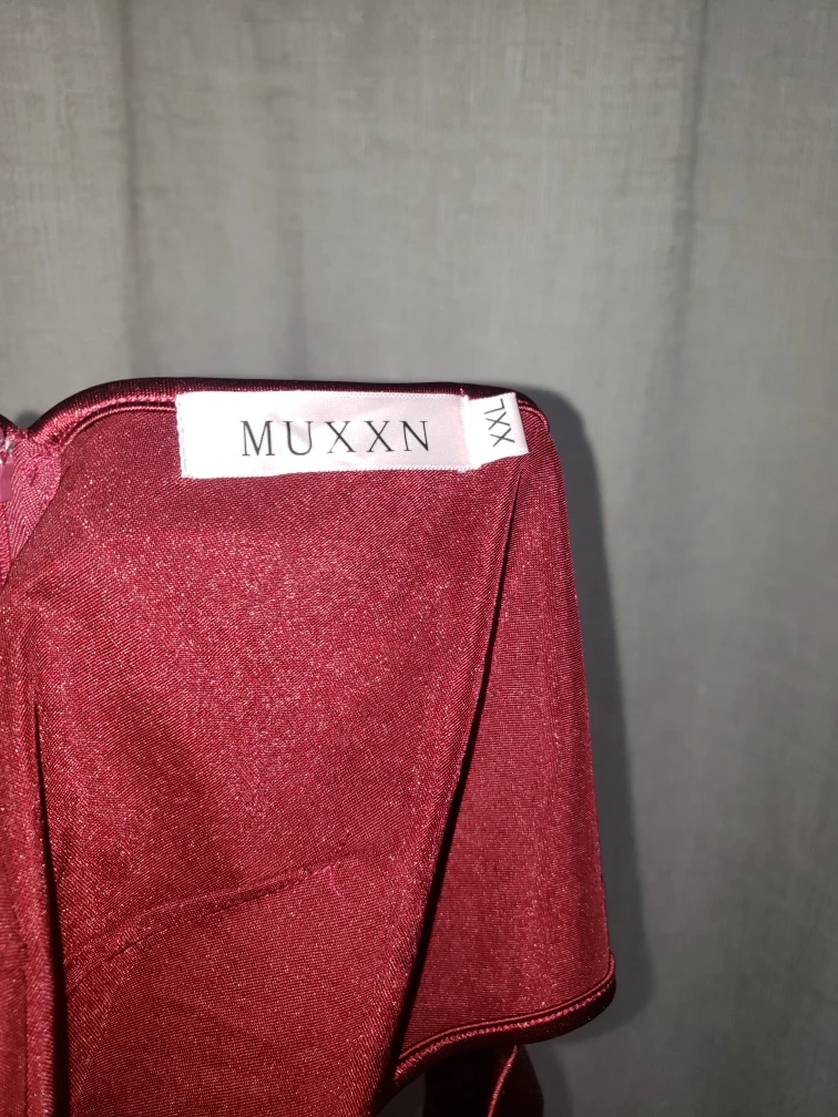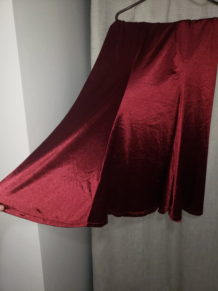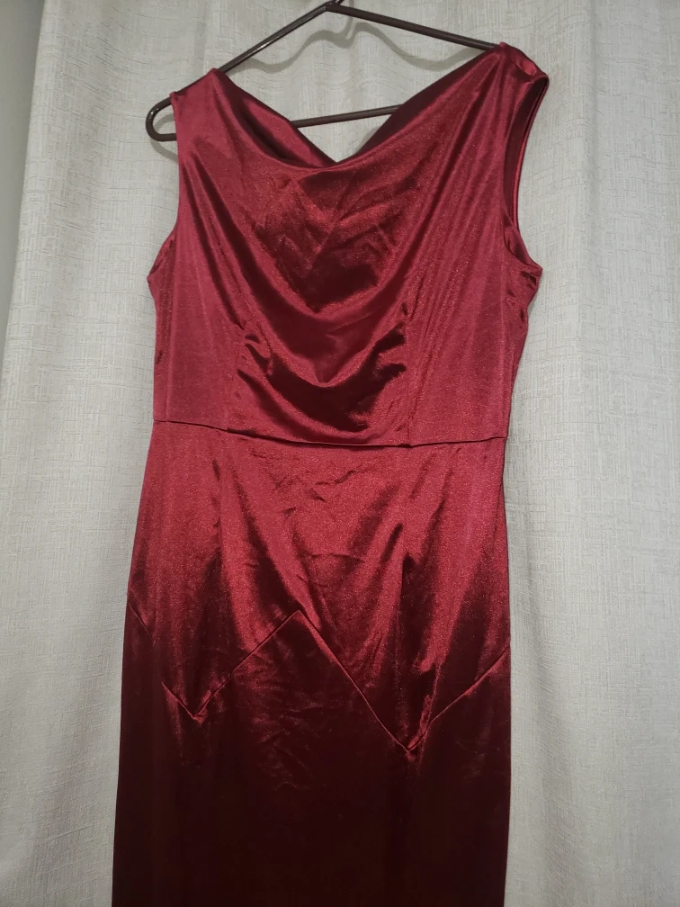 NEW burgundy gown,, medium weight stretch satin like material. Flared bottom.