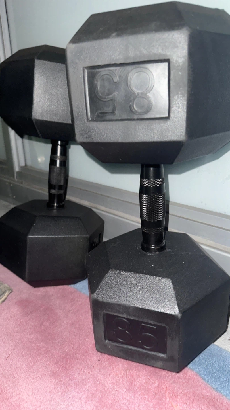 Buy & SellPair of 85 lb Hex DumbbellsPair of 85 lb Hex Dumbbells$170Selling a pair of 85 lb hex dumbbells. They're in great shape and ready for your home workouts!ConditionLike new0 chats·0 favorites·3 viewsSELLERMaroEast Vancouver421 reviewWHERE TO MEETCheck Location
