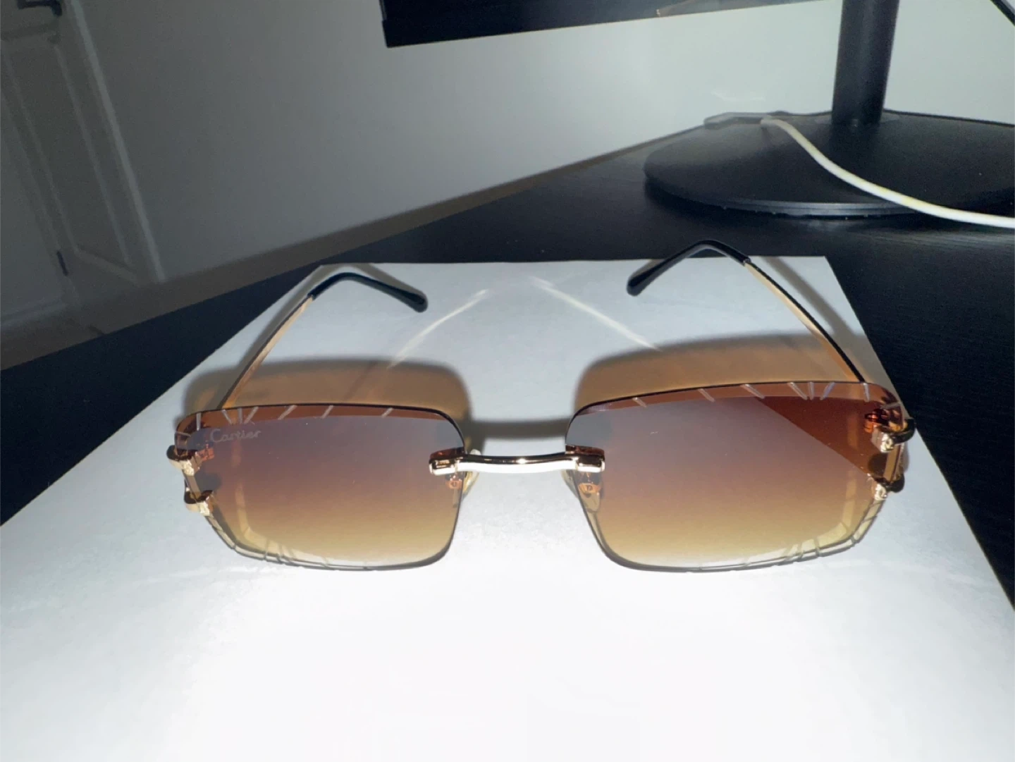Selling a pair of Cartier sunglasses. They feature a rimless design with a gold-tone frame and gradient lenses. Comes with the original Cartier case and box!