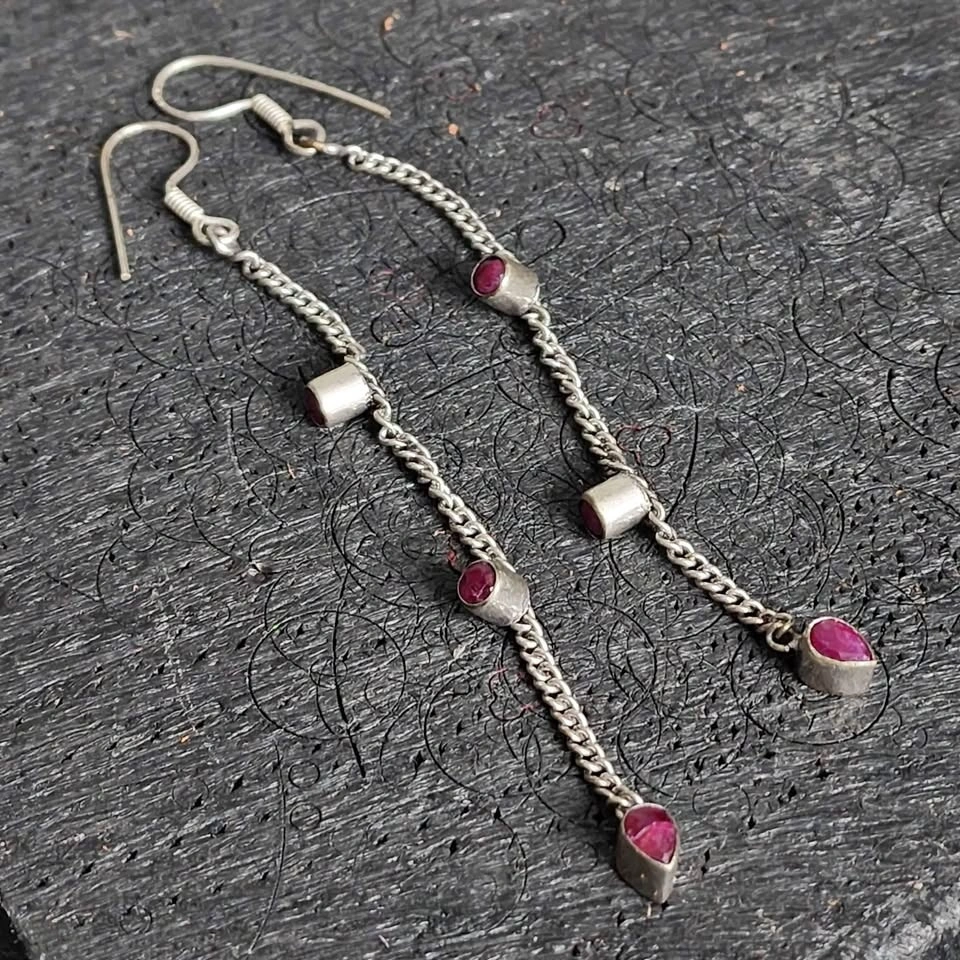 Vintage Antique 925 Sterling Silver Ruby Dangle Earrings