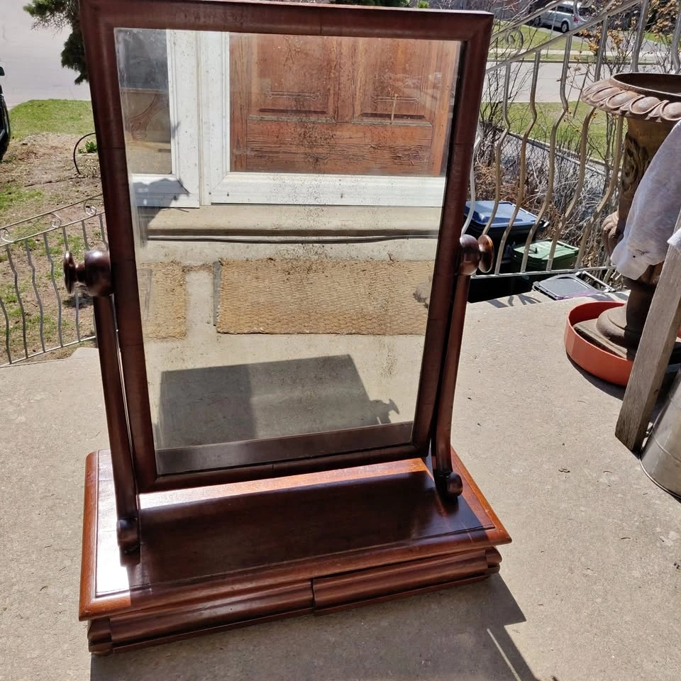 Antique vintage dresser mirror with 2 drawers for precious belongings. Solid walnut wood.