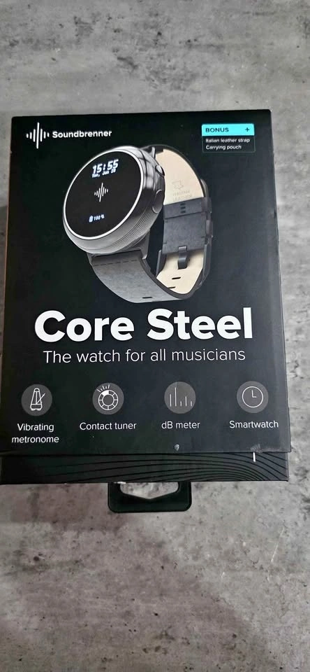 Comes with all items originally in the box, plus an extra charger and screen protector. Basically new. Was a gift but I didn't get to use it much. Retails for $450. Vibrating Metronome, Magnetic Tuner, Decibel Meter, Watch – your essential music tools always with you. Watch: With up to 3 days of battery life, you can check the time, set alarms, get push notifications and never be late for any gig or rehearsals. What's Included: • Soundbrenner Core Steel • Italian Leather strap • Charging cable • Body strap • Magnetic tuner mount • (Bonus) Black silicone strap • (Bonus) Carrying pouch