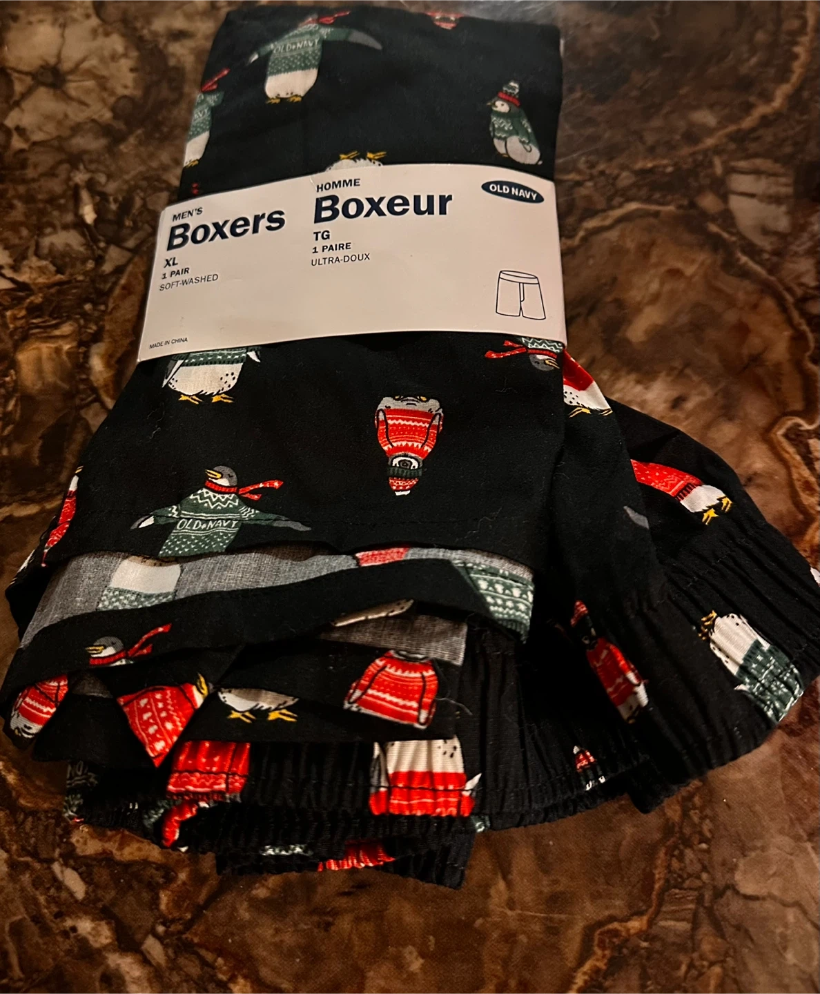 These Old Navy men's boxers are brand new and still in the original packaging! They are sizes:Large & XL and feature a fun penguin print. Soft-washed for extra comfort!