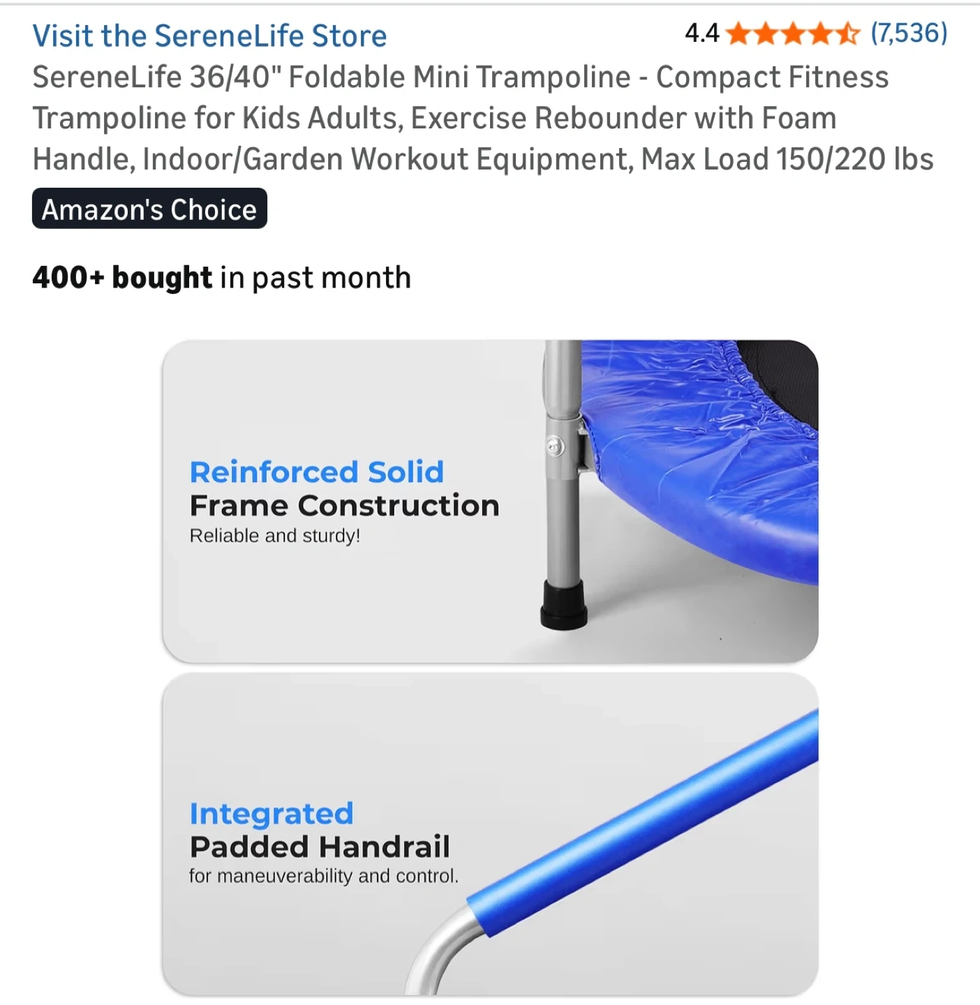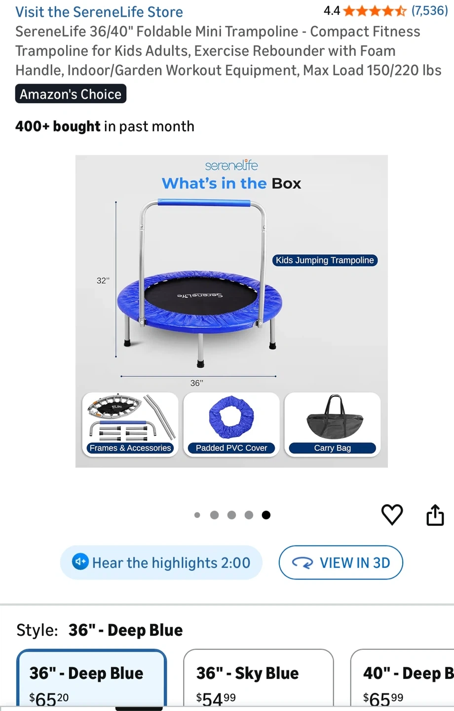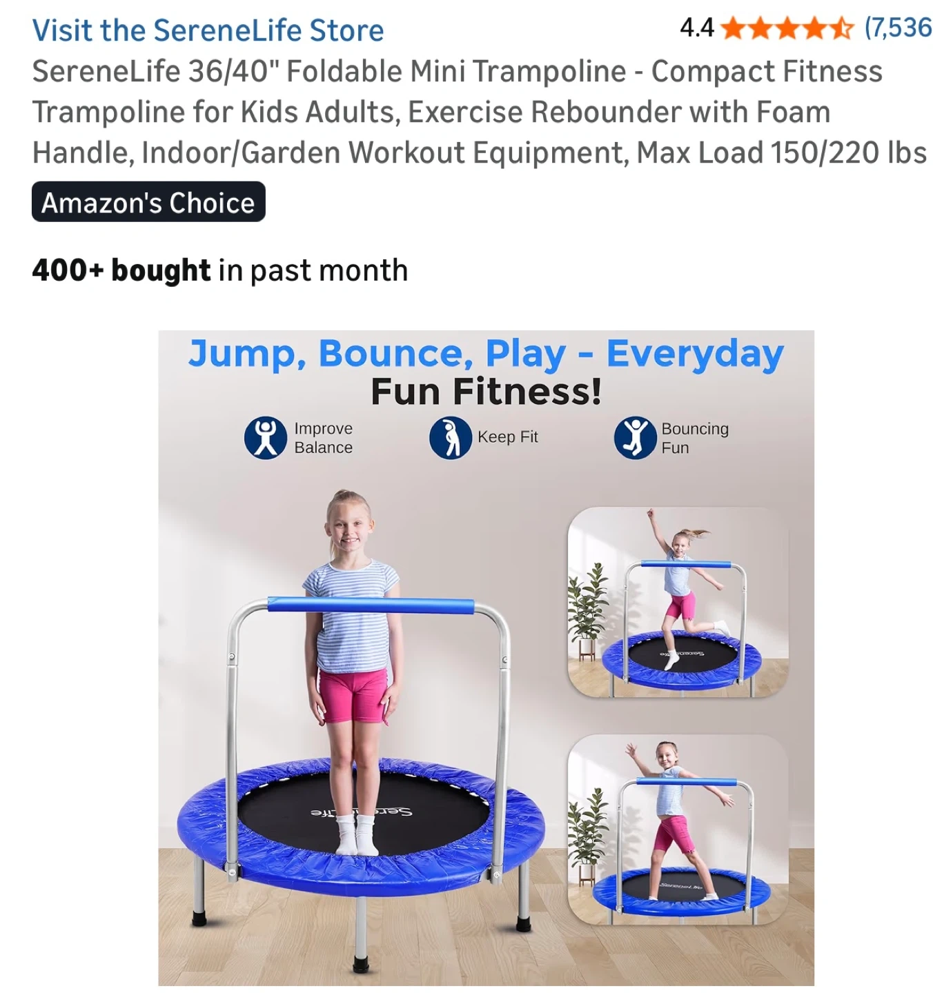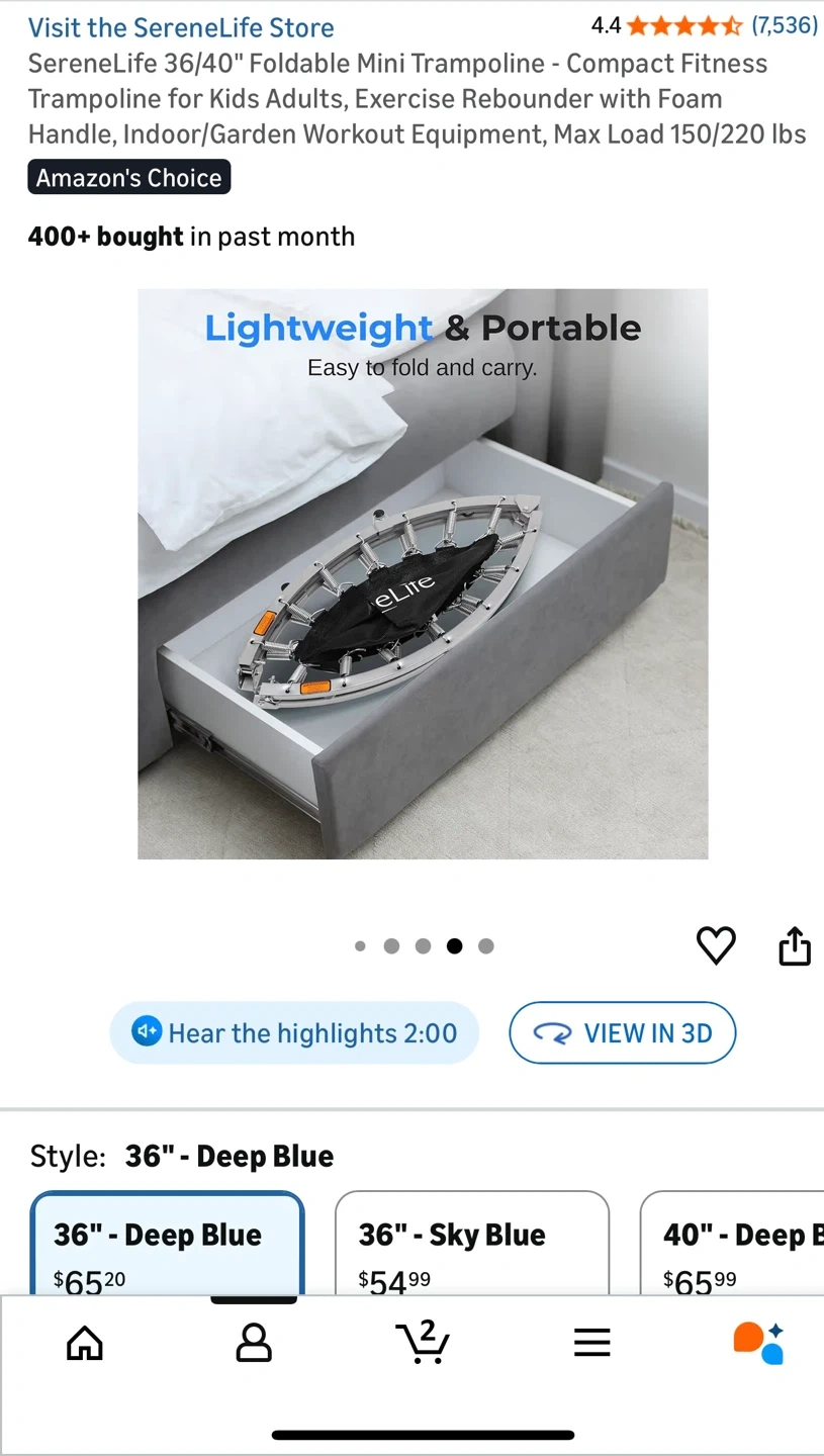 Selling a SereneLife 36" foldable mini trampoline. It's great for both kids and adults who want to get some exercise indoors or in the garden. It's lightweight and portable, making it easy to fold and carry. Originally bought for $65.20. It also comes with the padded PVC cover, frames & accessories and carry bag