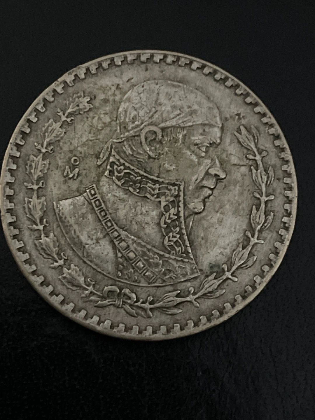 Selling a 1962 Mexican one peso coin. It features "ESTADOS UNIDOS MEXICANOS" around the edge and an eagle emblem in the center. A great piece for collectors!