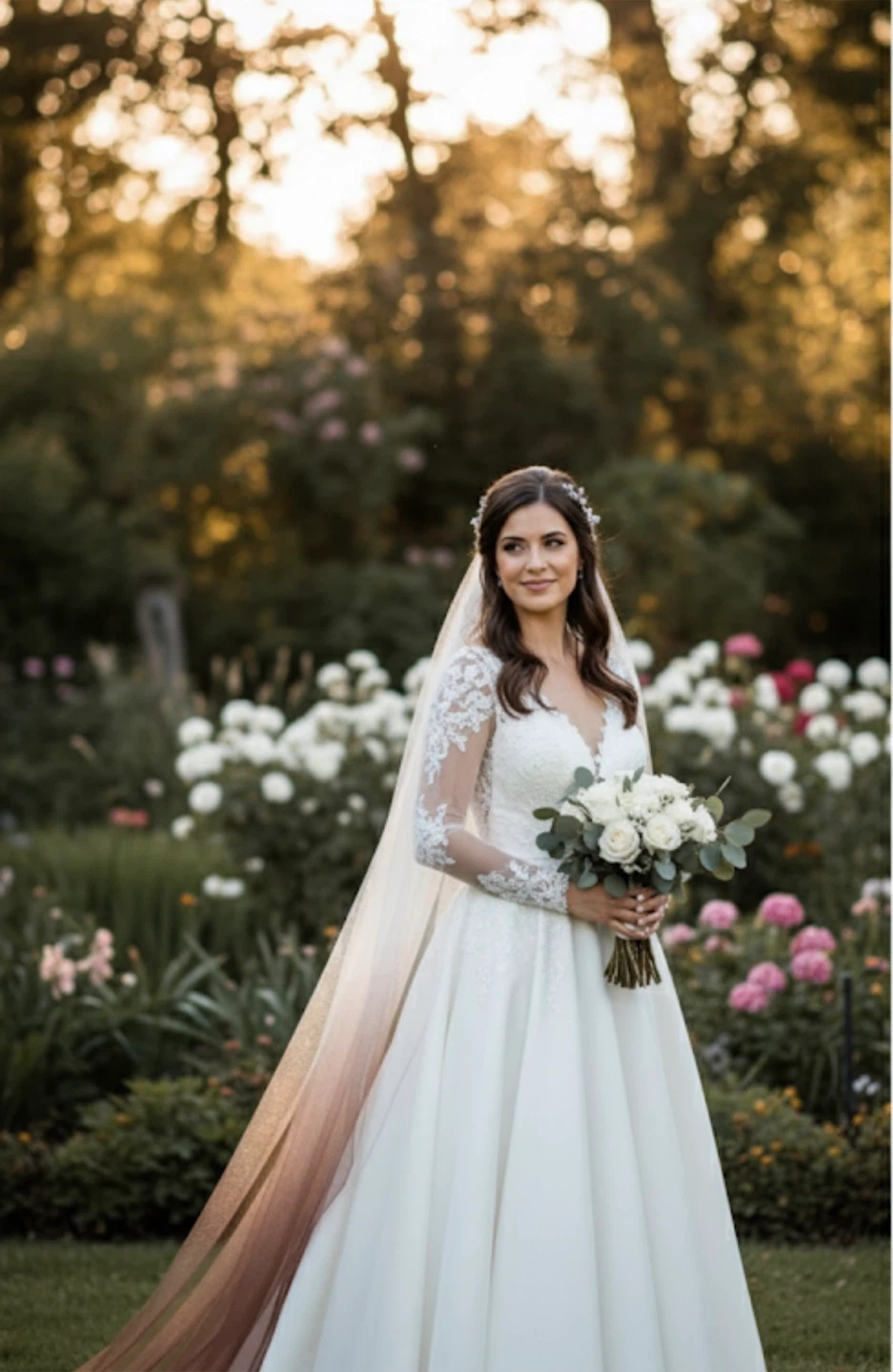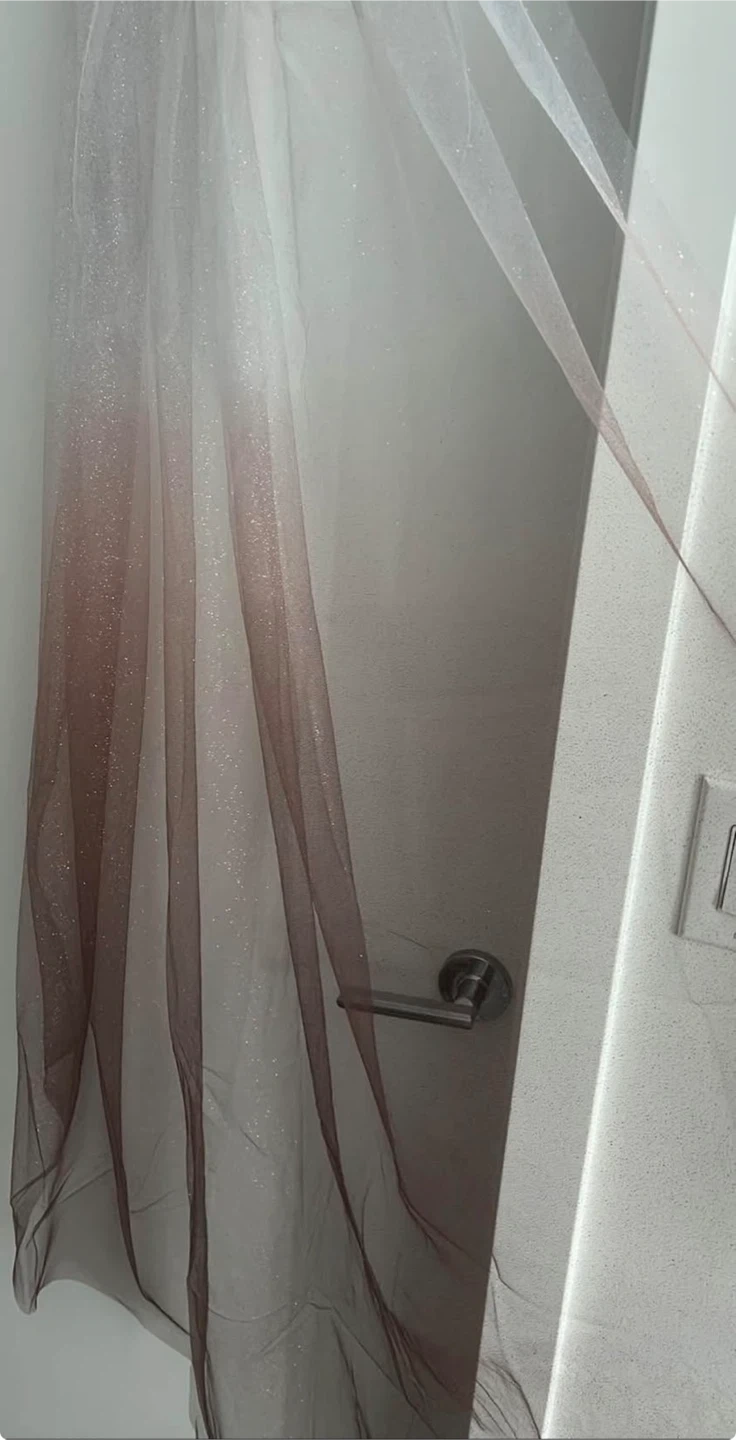 Selling a beautiful bridal veil with a lovely white and brown ombre effect. It has a comb attached for easy placement. Perfect for adding a touch of elegance to your special day!