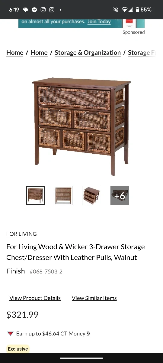 This is a For Living Wood & Wicker 3-Drawer Storage Chest/Dresser with Leather Pulls in Walnut finish. It's perfect for adding a touch of rustic charm to any room. Originally bought for $321.99!