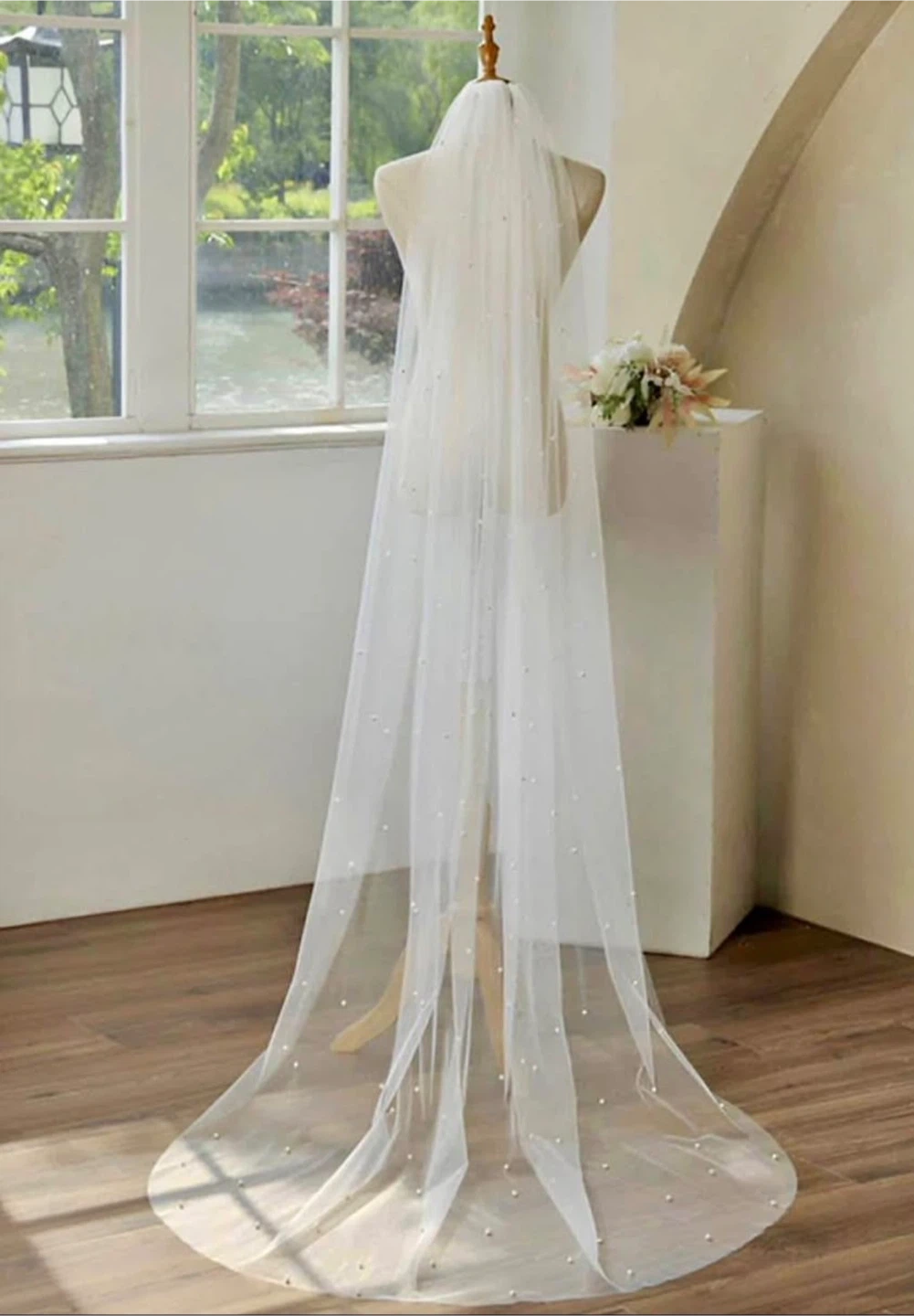 Selling a beautiful, brand new wedding veil! It's a gorgeous white colour and features delicate pearl embellishments throughout. Perfect for adding a touch of elegance to your special day. Attaches with a comb.