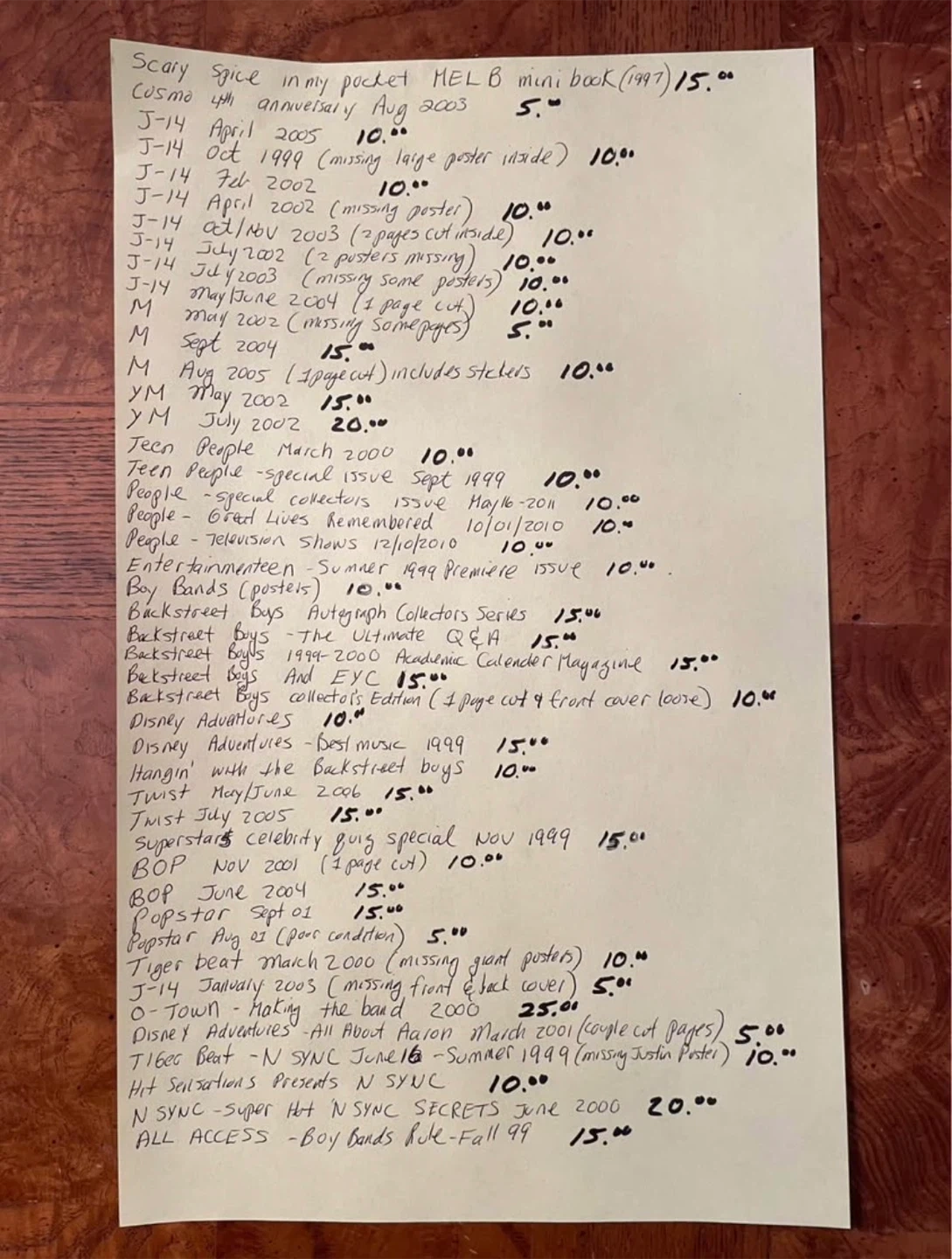 Selling a collection of vintage teen pop magazines from the late 90s and early 2000s! Perfect for a trip down memory lane or for any Y2K enthusiast. Features all your favourite artists like Britney Spears, *NSYNC, Backstreet Boys, and more! Great for collectors or anyone looking for a bit of nostalgia.Prices on page 10