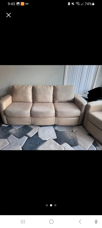 Selling a comfy beige sofa set! Includes a loveseat and a three-seater sofa. Perfect for a living room or family space. Gently used and ready for a new home