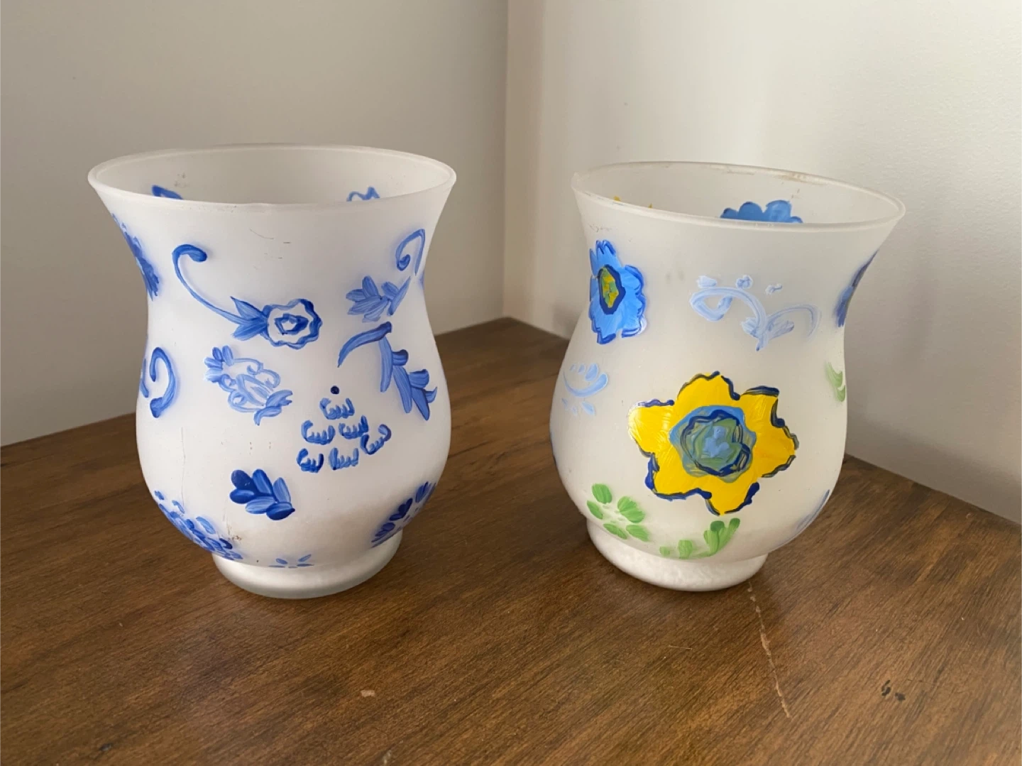 These two candle holders come with candles. They could easily be used as vases. They were originally bought from Hallmark and have never been used.