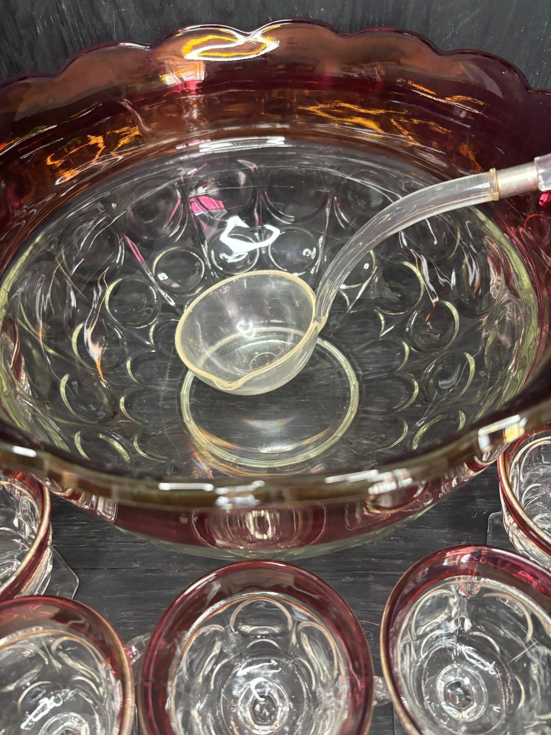 Indiana Glass Ruby Red Glass Punch Bowl Set
