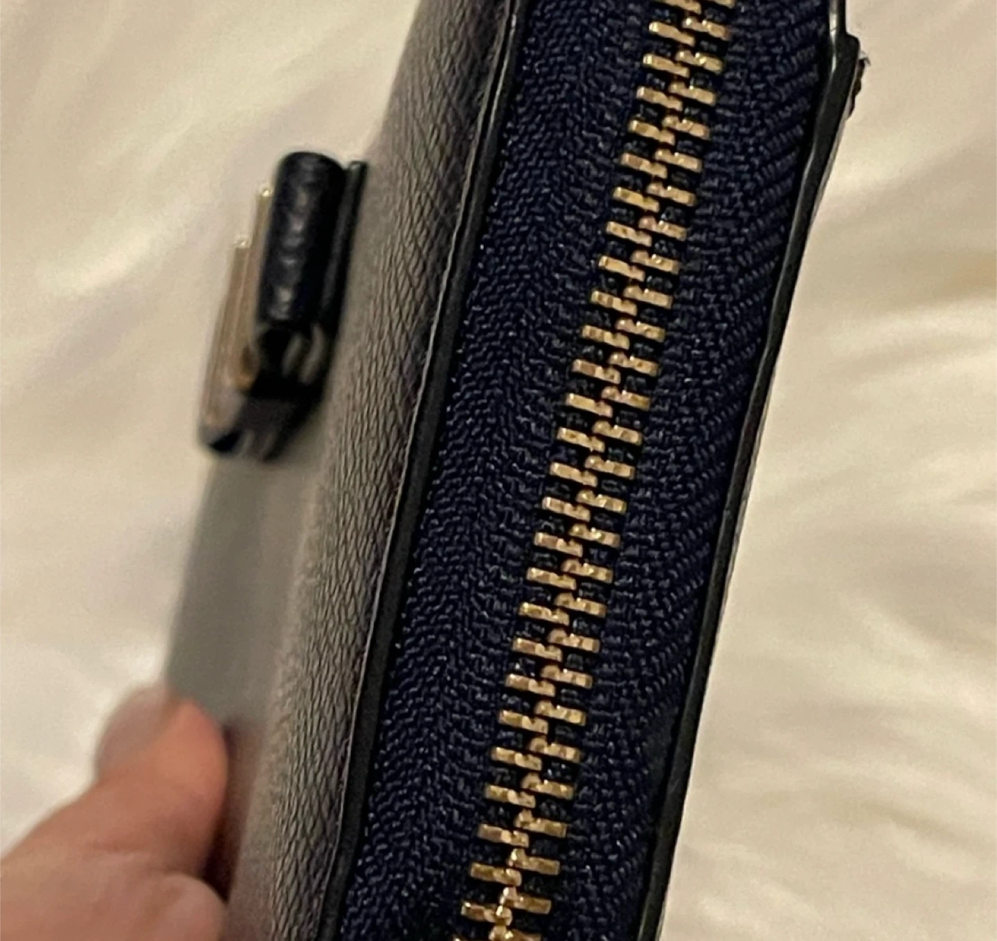 —Center divider zip pocket creates 3 extra full-length compartments for currency/bill/receipts etc.