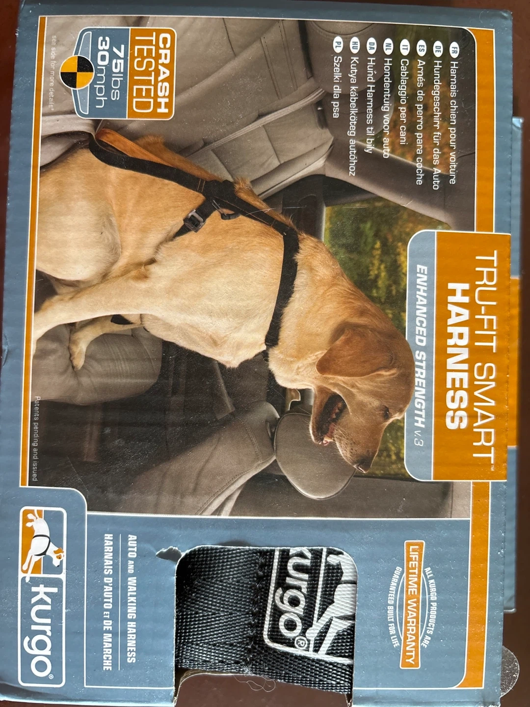 Looking to sell a Kurgo Tru-Fit Smart Harness. This is size LG,suitable for dogs weighing 50-80 lbs with a chest size of 24-34inches. It's crash tested for dogs up to 75 lbs at 30mph, ensuring your furry friend's safety in the car. The harness features all-steel hardware for strength and durability, and a padded chest plate for extra comfort. Includes a tether for car seat attachment
