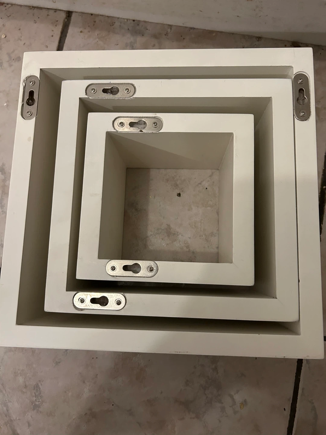 Selling a set of three square floating shelves! They're in great shape and ready to add some style to your walls. Perfect for displaying your favourite items or adding extra storage