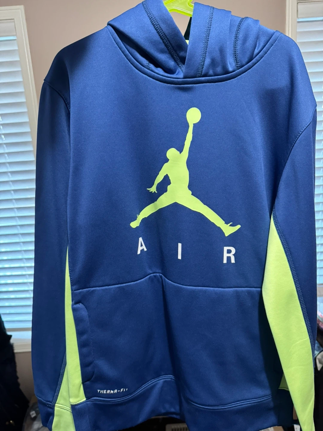 Selling a Nike Air Jordan Therma-Fit hoodie in a cool blue and green colour combo! It's in great shape and ready for a new home. Perfect for staying warm and looking stylish. Feel free to message me with any questions!