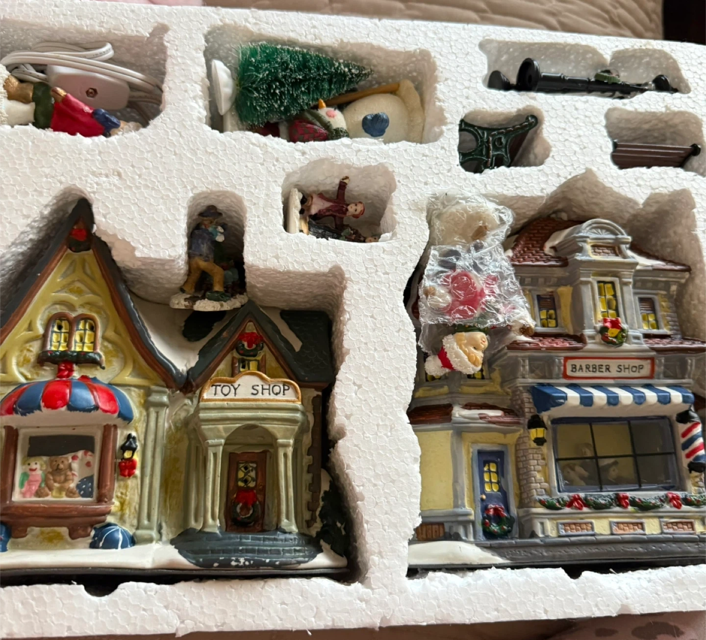 Selling a cute 10-piece porcelain lighted village set! It's in great condition and comes with all the pieces shown in the box. Perfect for adding a festive touch to your home during the holidays sales proceeds to church