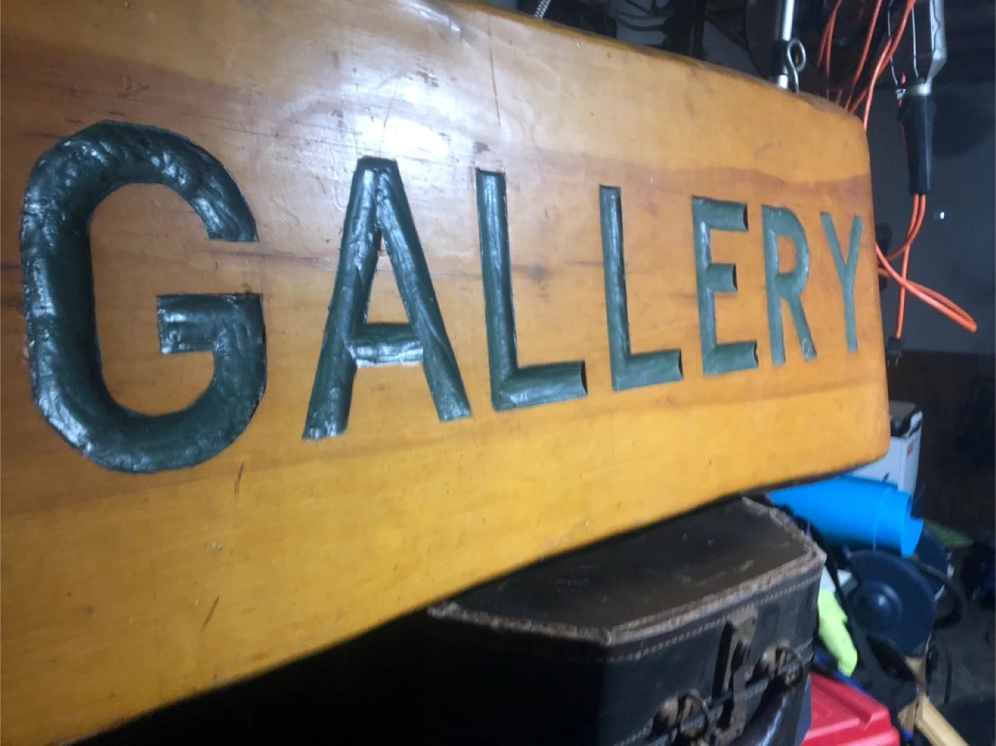 Selling a handmade wooden sign that says "GALLERY" in dark green lettering. It's a unique piece that would add a rustic touch to any space. The wood has a warm, natural finish. It's in good condition and ready to be displayed