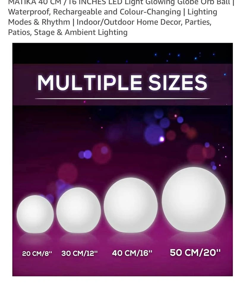 LED Light Glowing Globe Orb Ball | Waterproof, Rechargeable and Colour-Changing | Lighting Modes & Rhythm | Indoor/Outdoor Home Decor, Parties, Patios, Stage & Ambient Lighting
