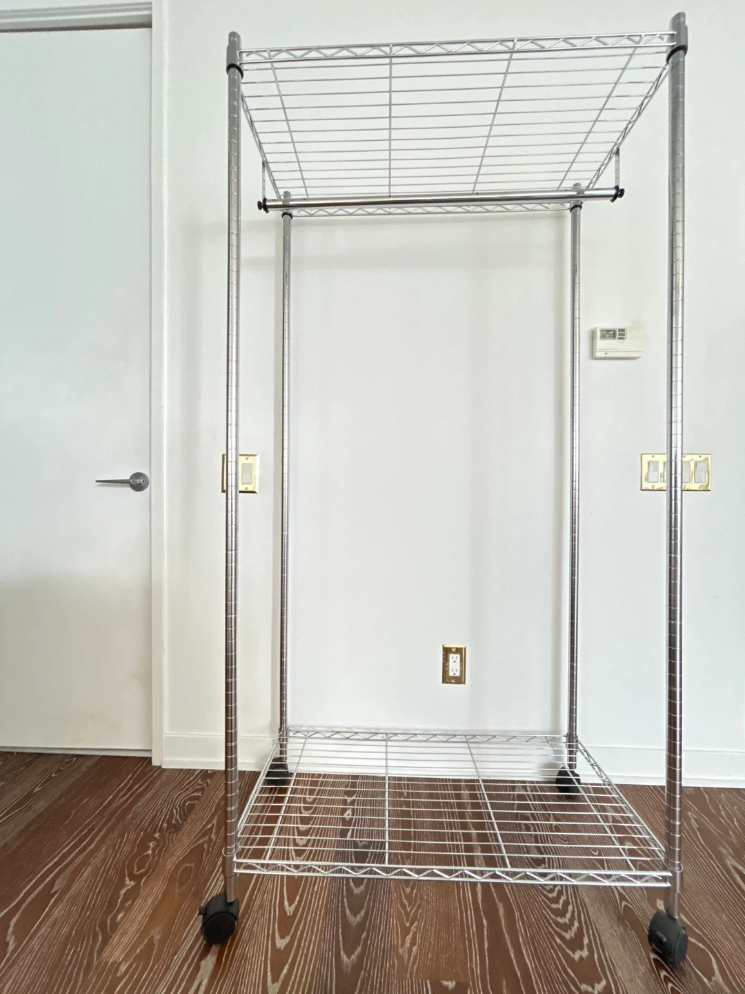 Selling a chrome metal garment rack! It's in great shape and ready to help organize your clothes. Perfect for adding extra storage to your closet or creating a pop-up shop display