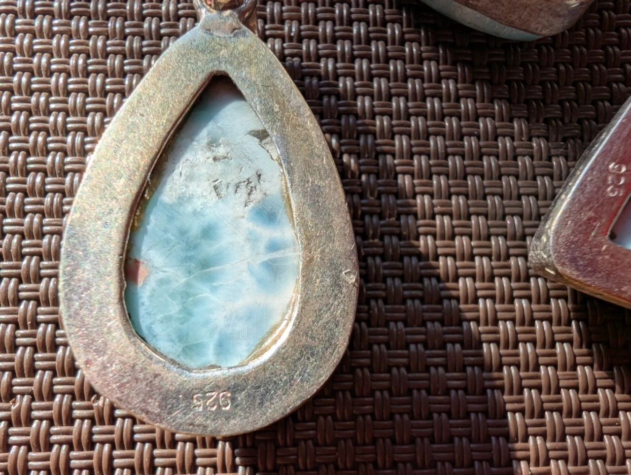 Selling part of my collection, three Larimar pendants set in 925 stamped silver.