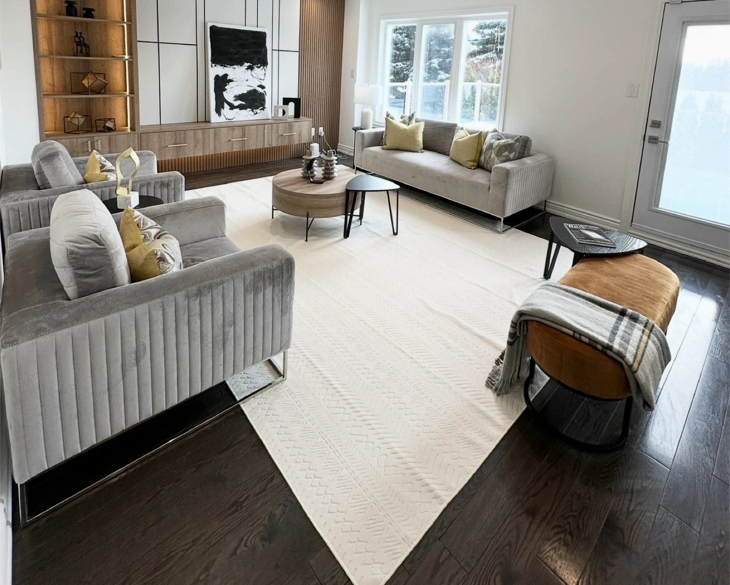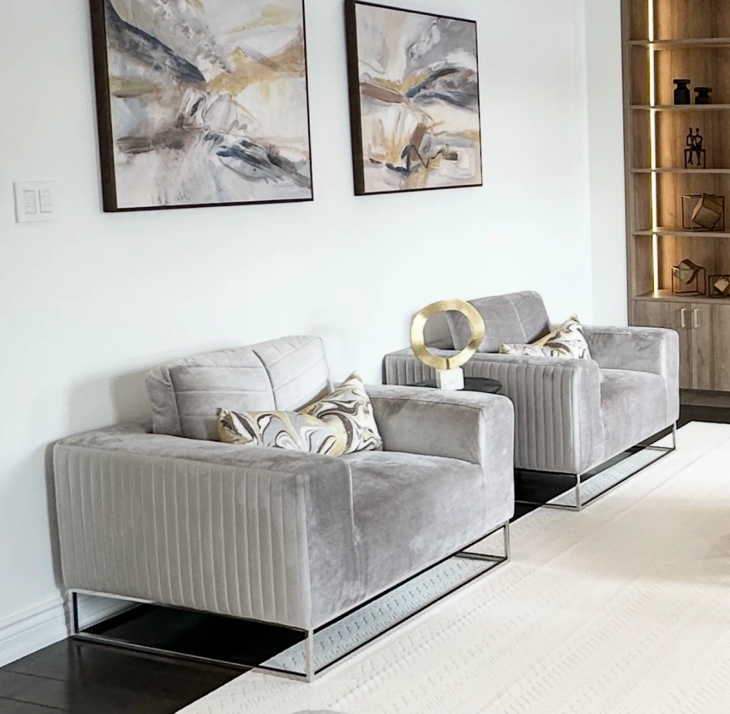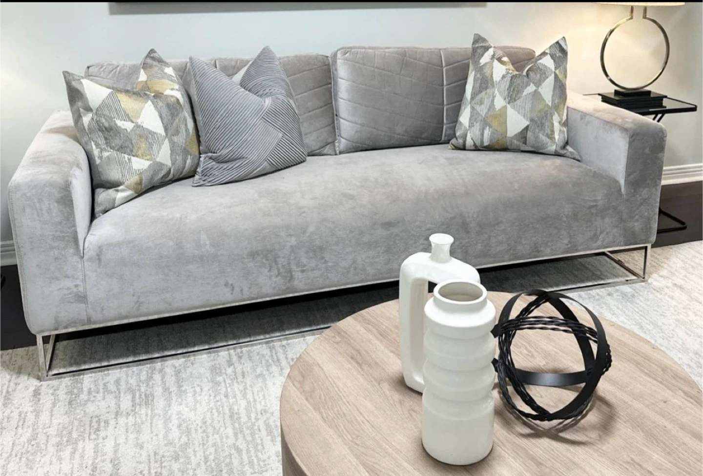 Grey Velvet Sofa & Armchairs Set