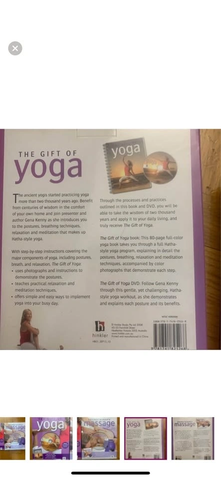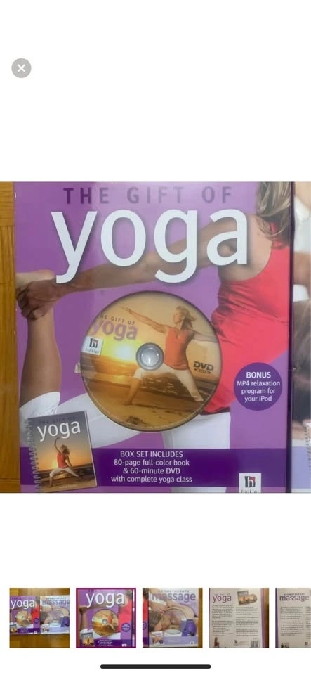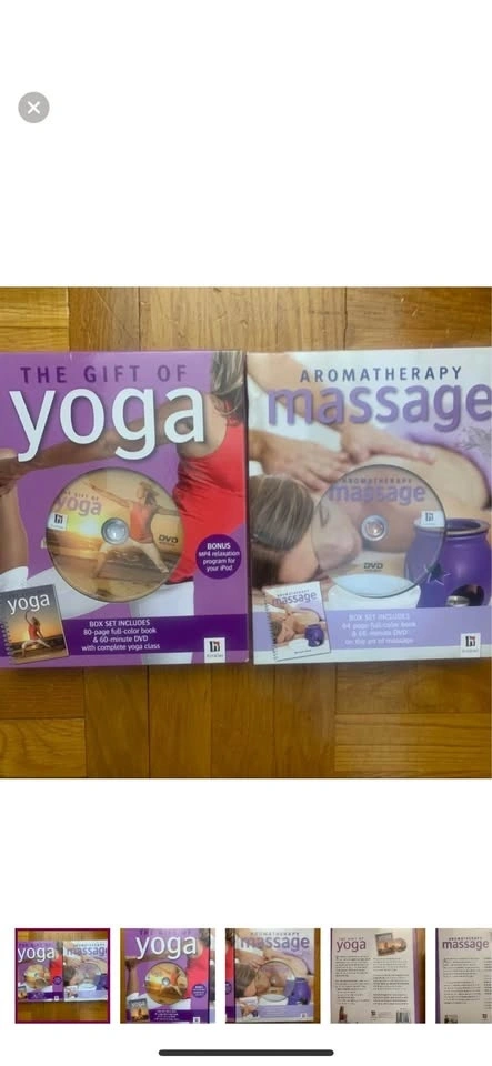These have never been opened; ‘The Gift of Yoga’ includes an 80 page book that takes you through a full Hatha-style yoga program & a dvd with Gena Kenny; Aromatherapy Massage includes a 64 page book w/a step by step guide and a dvd with Margie Hare to guide you. Pick up on 45th and 9th ave