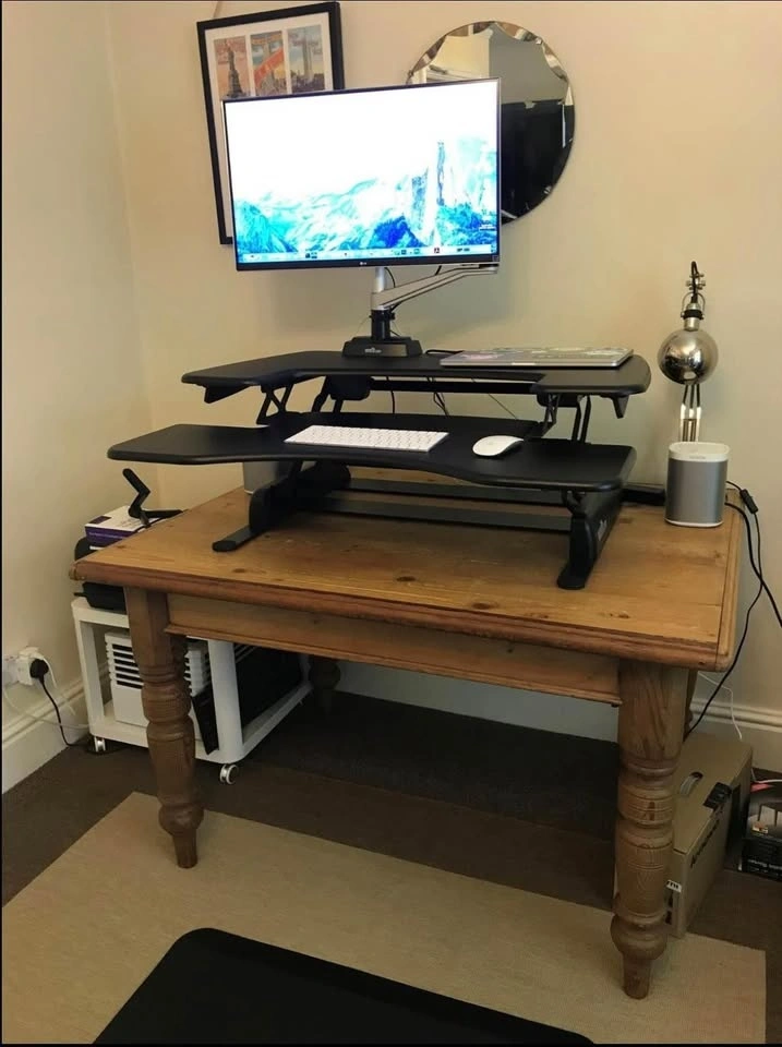 -Uses VARIDESK's patented spring-loaded lifting mechanism to easily lift up to 35 lbs. (15.8 kgs.) in 3 seconds, allowing you to stand up and sit down without breaking your concentration