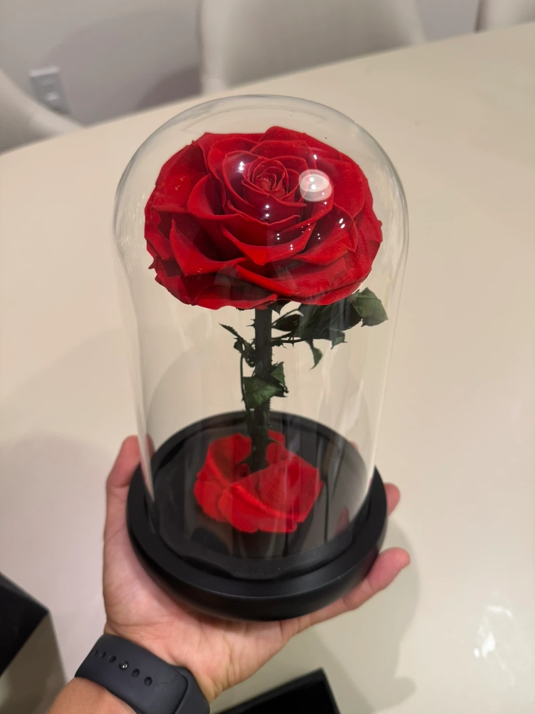 HOT GIFT! 9”Real Preserved Rose in the Glass Dome with Gift Box