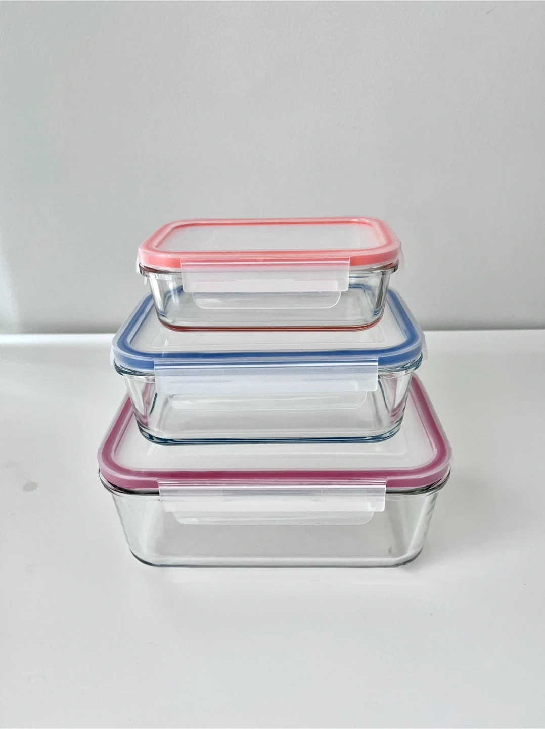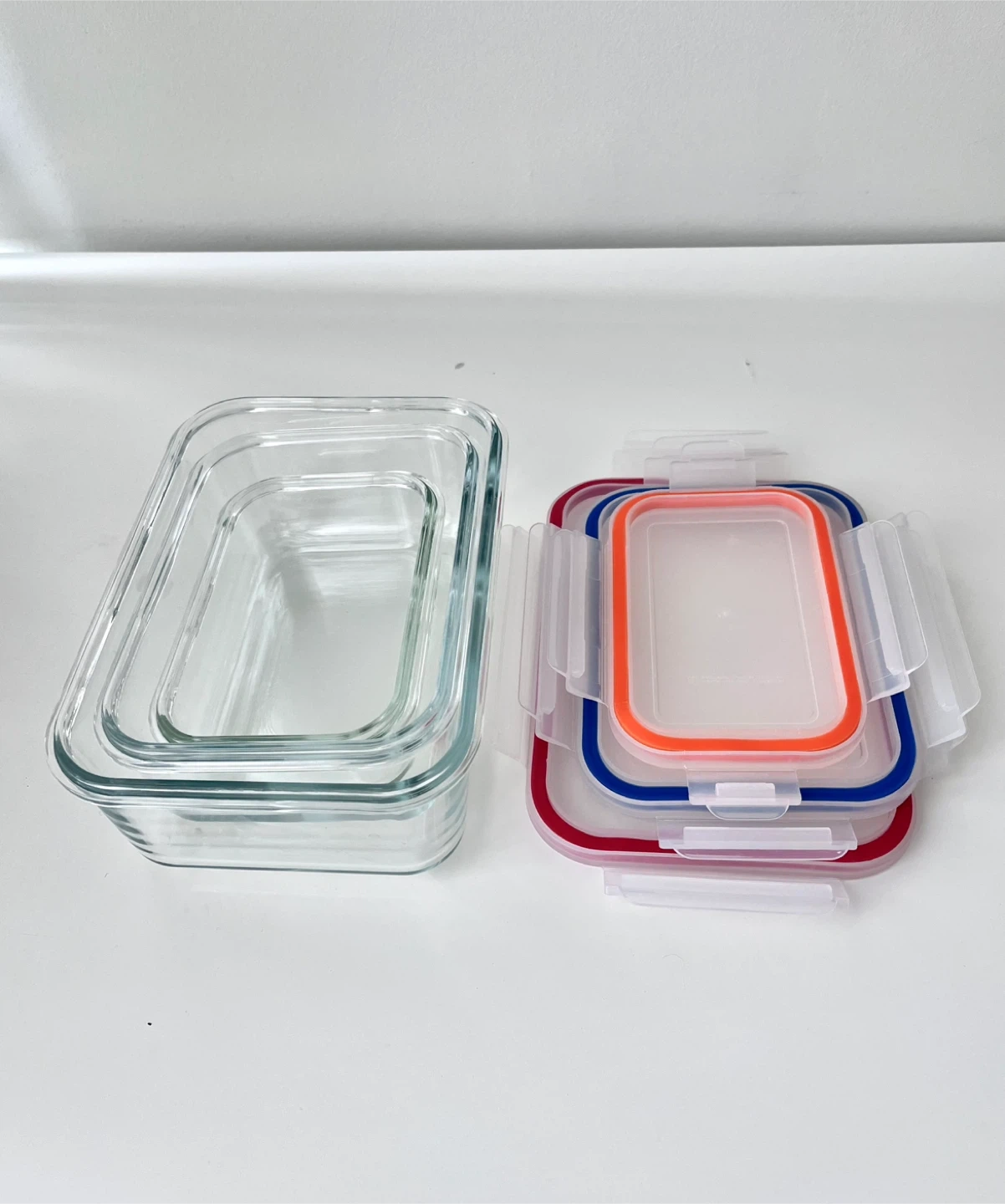 Glass Food Storage Containers โ Set of 3 (with lids)