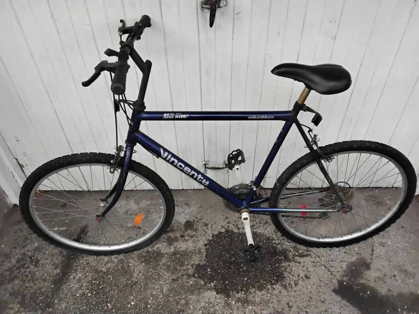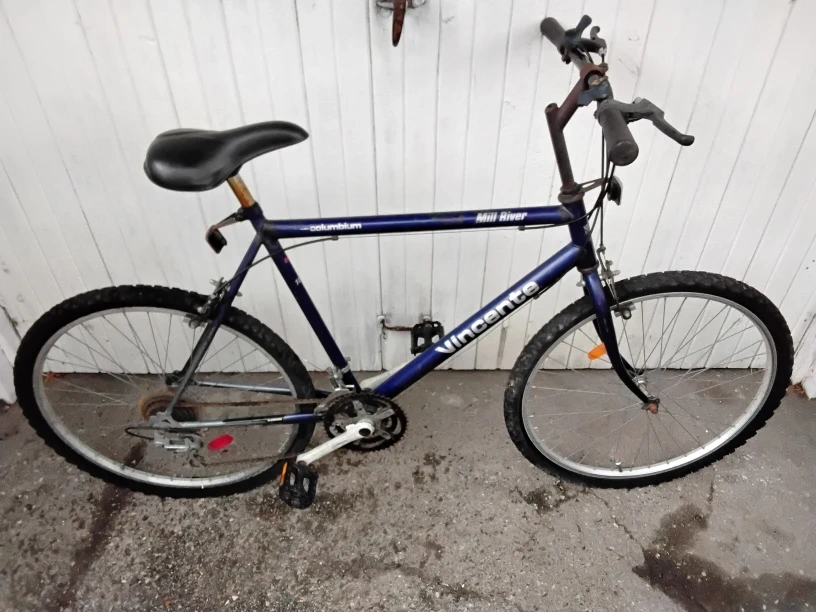 💫This bicycle in the image is a Vincente model mountain bike, which features "Mill River" and "columbium" labeling on the frame. It's a rugged and reliable machine built when steel was king and trails were wilder. This isn't just a bicycle; it's a tangible piece of the era that defined a sport, perfect for the rider who values heritage, durability, and a classic aesthetic.